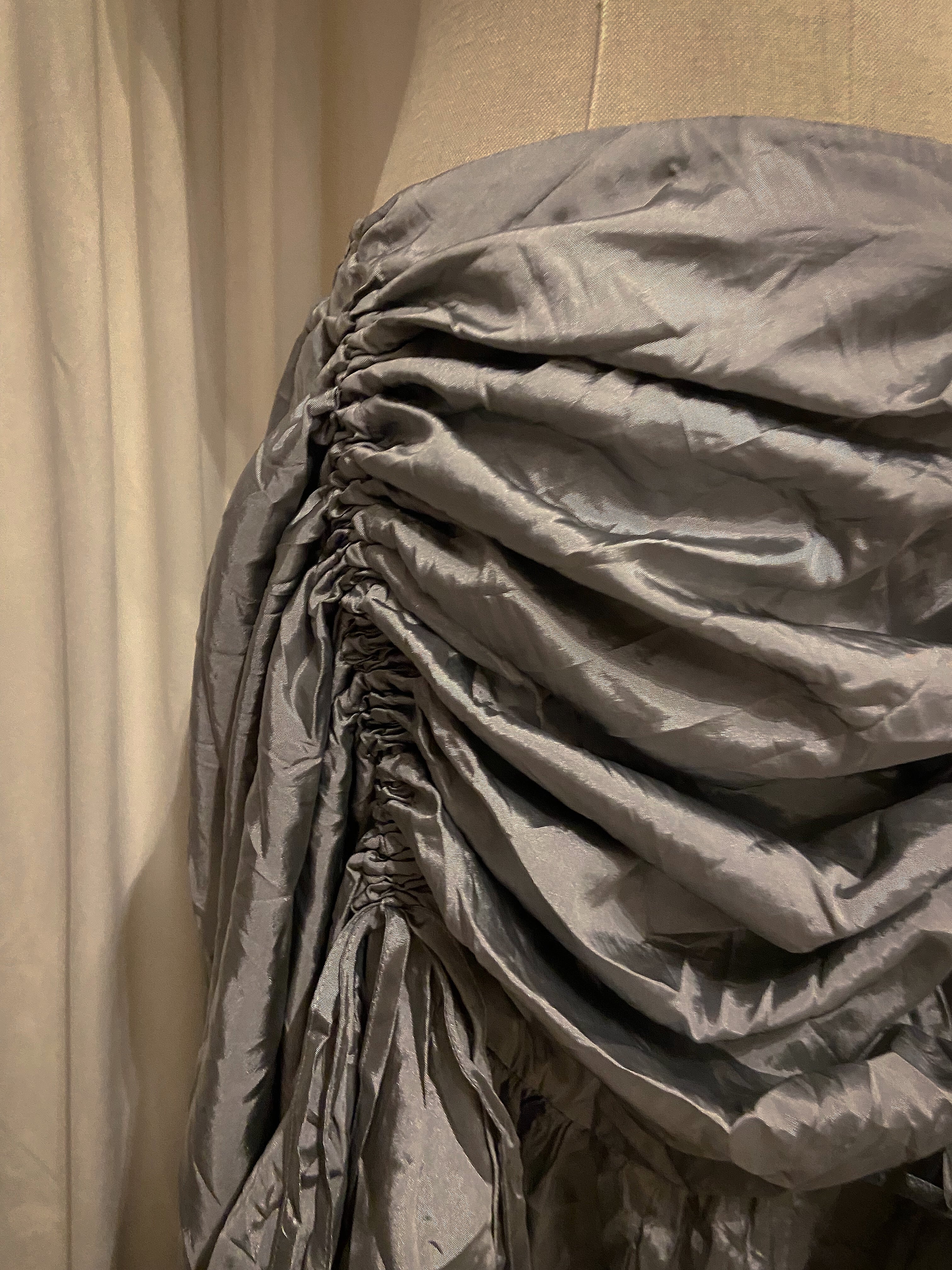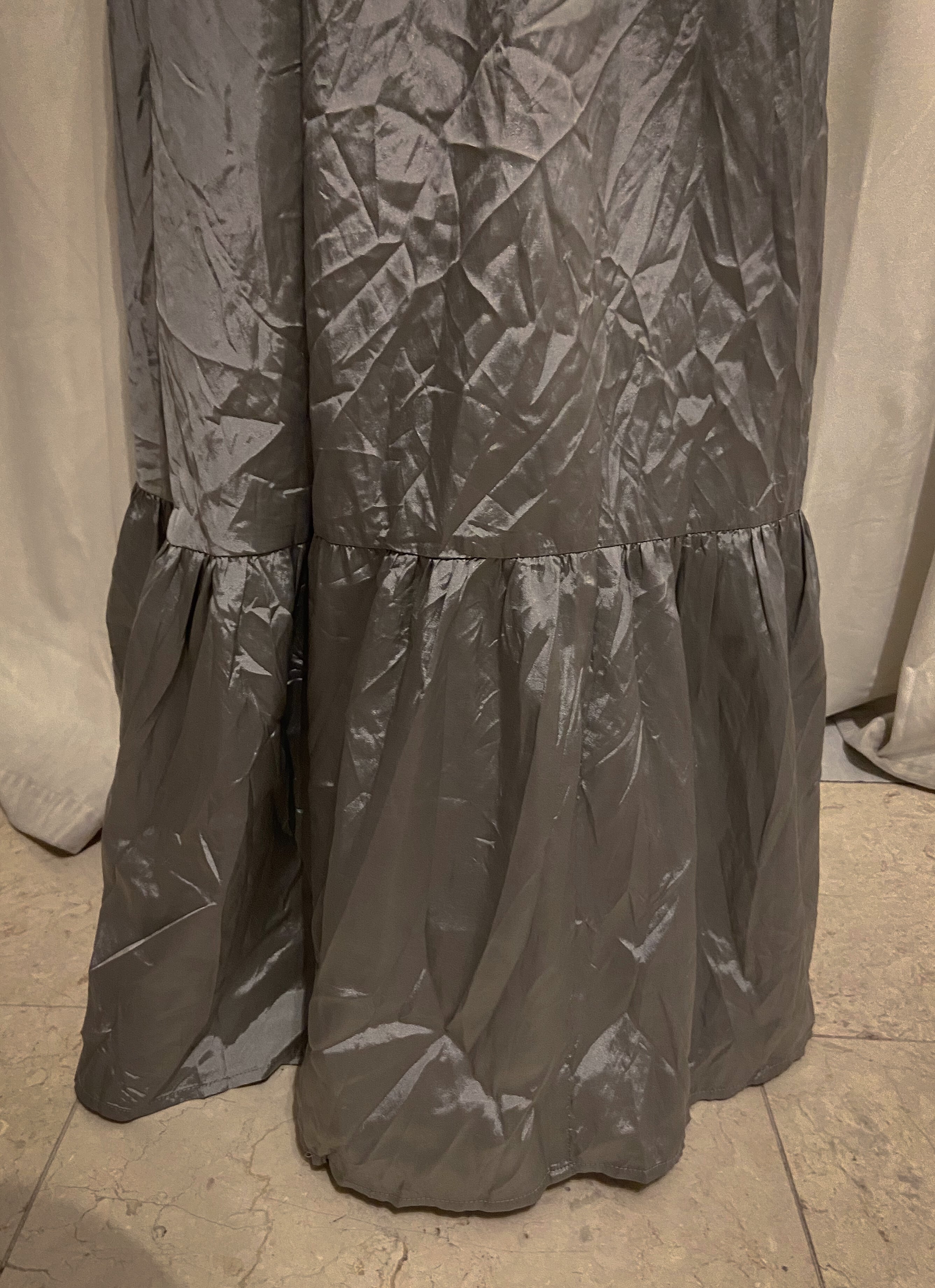 Drowstring Silver Asymmetry Super Long Skirt