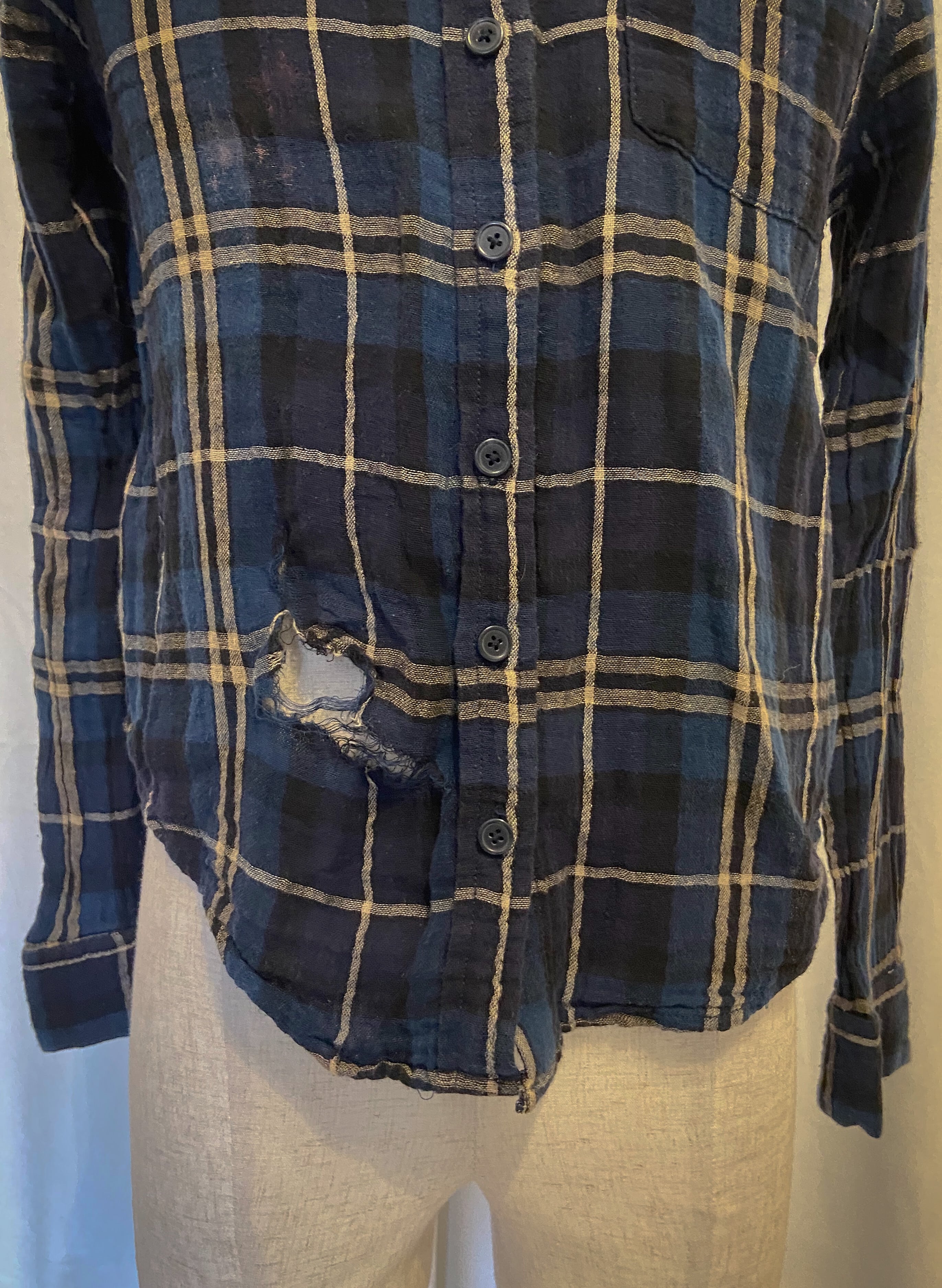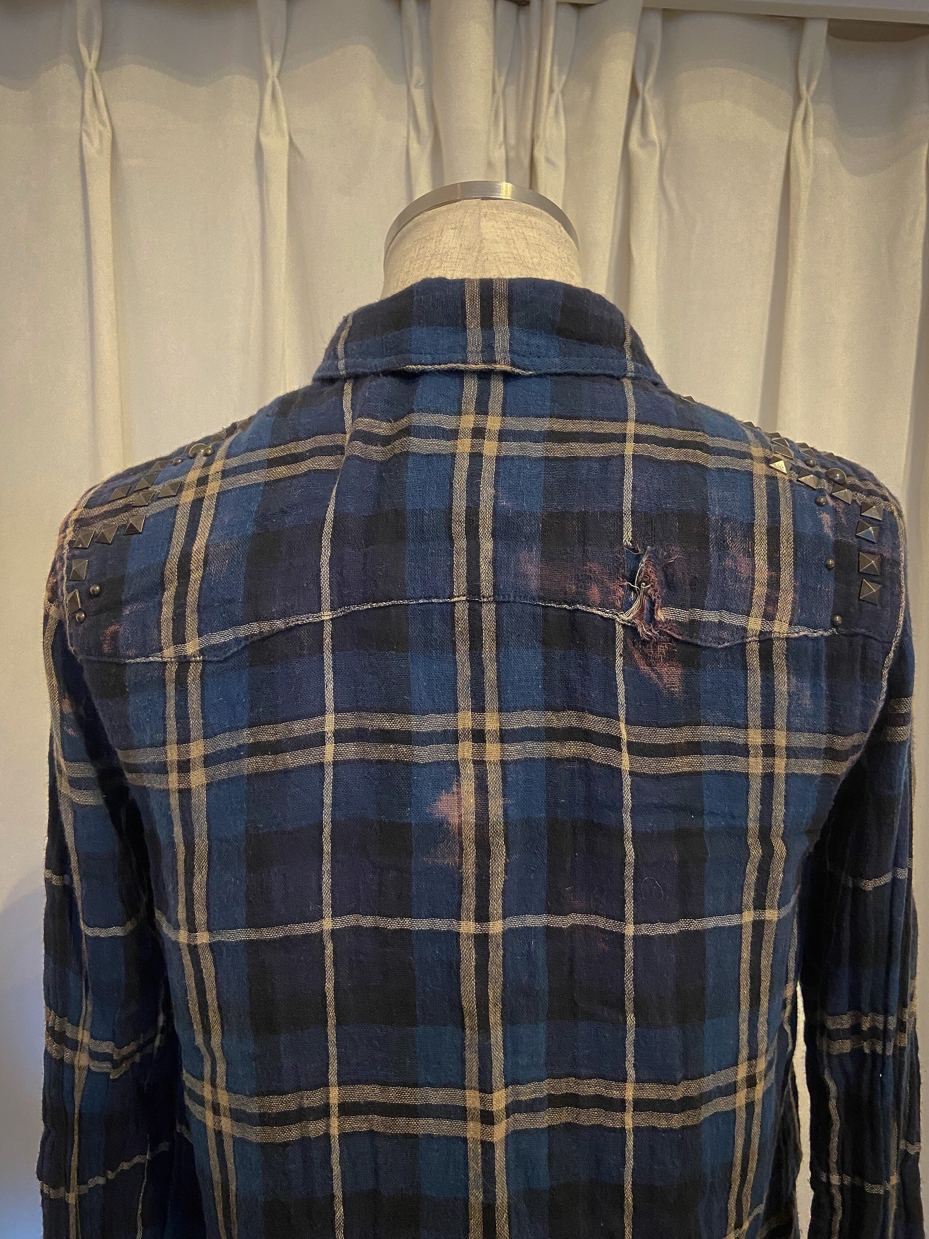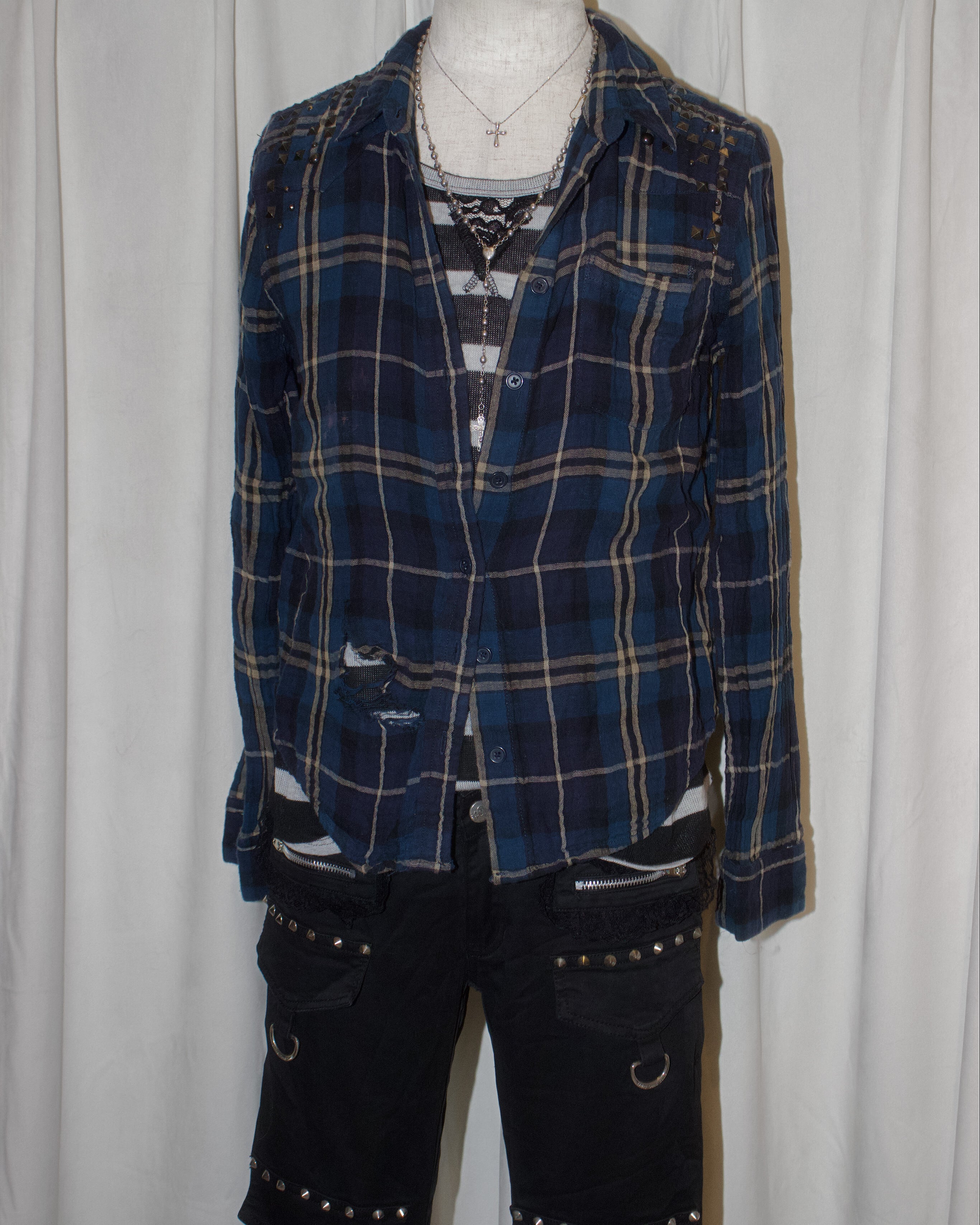 Damaged Blue Studs Gauze Shirt