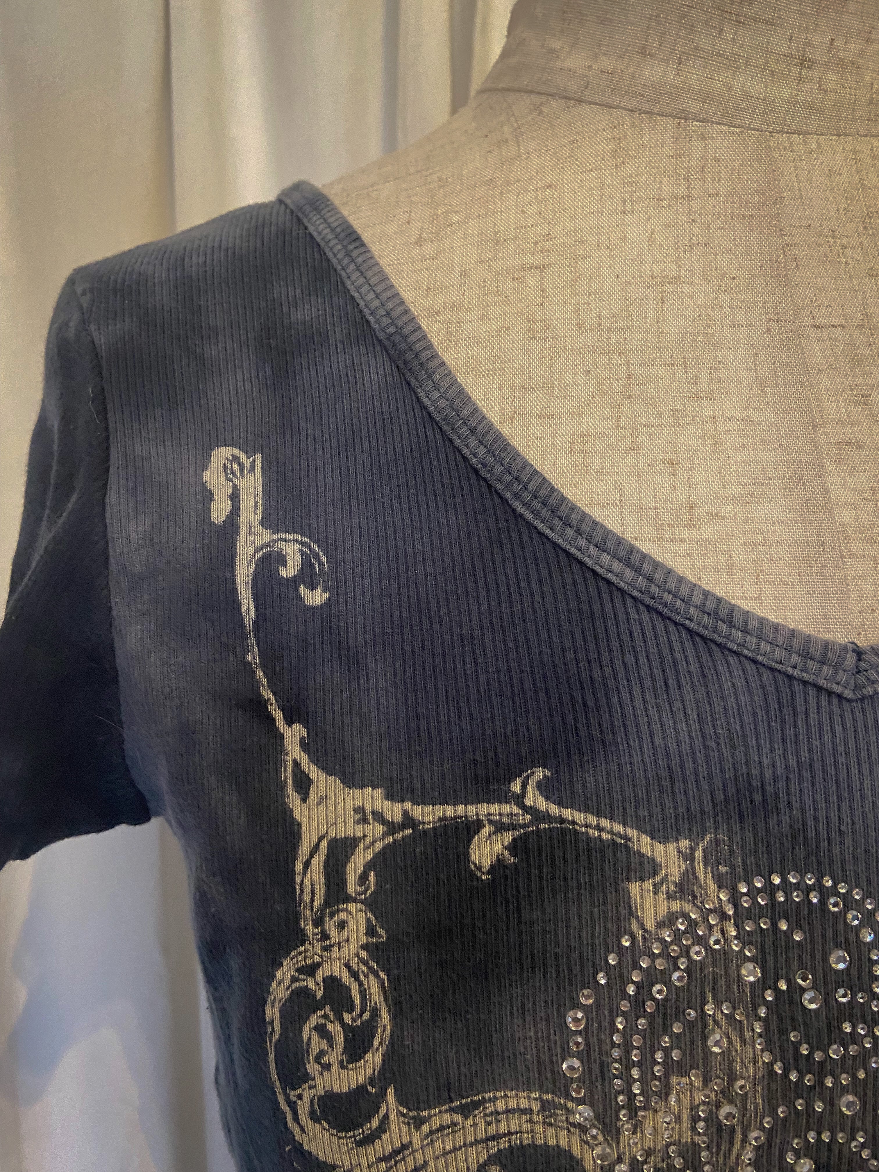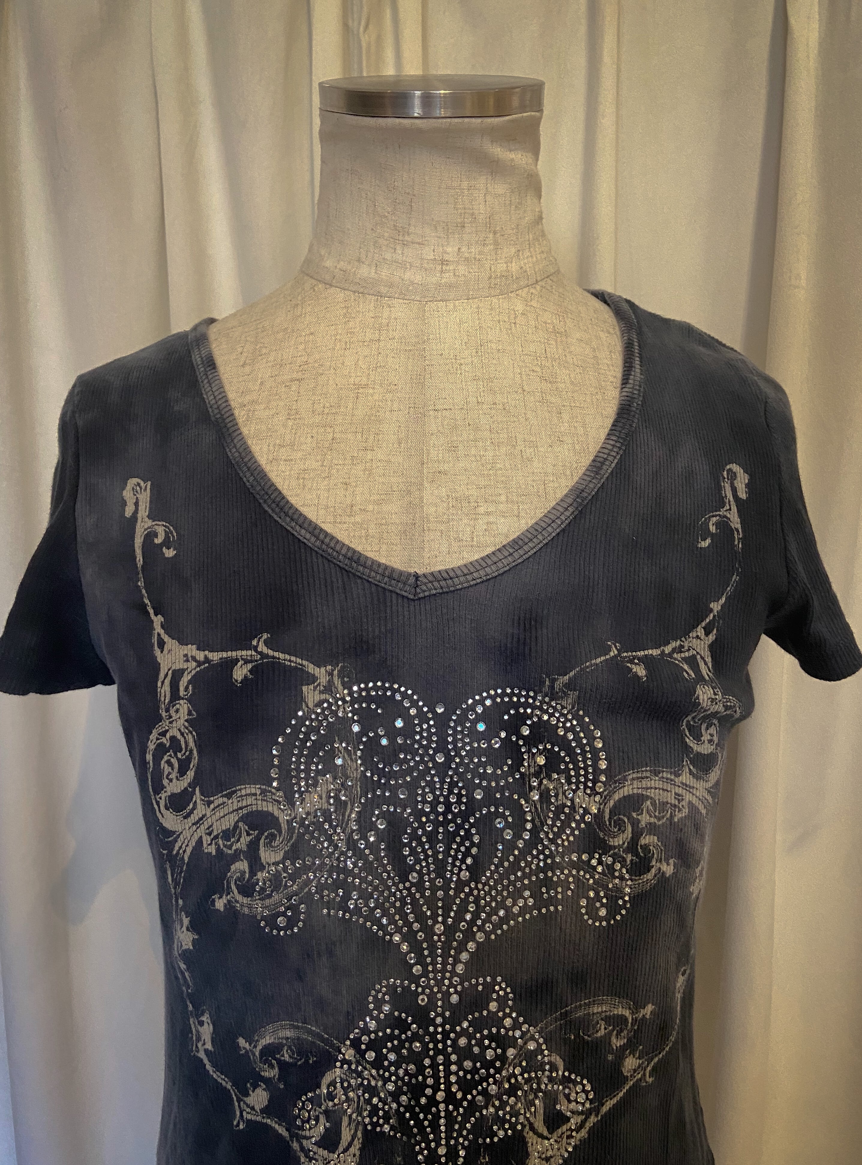 [USA] Heart Grunge Design Blue Tee