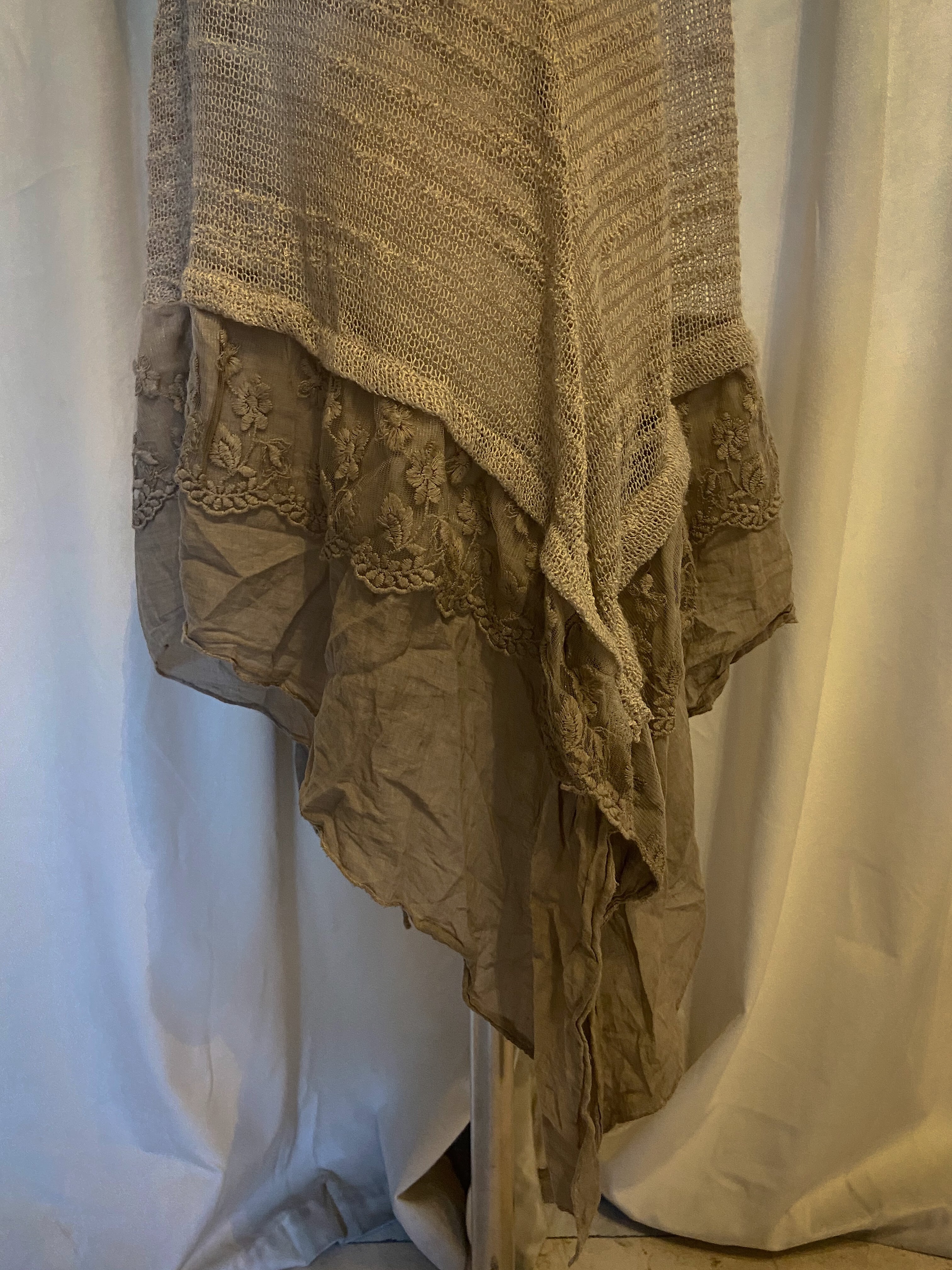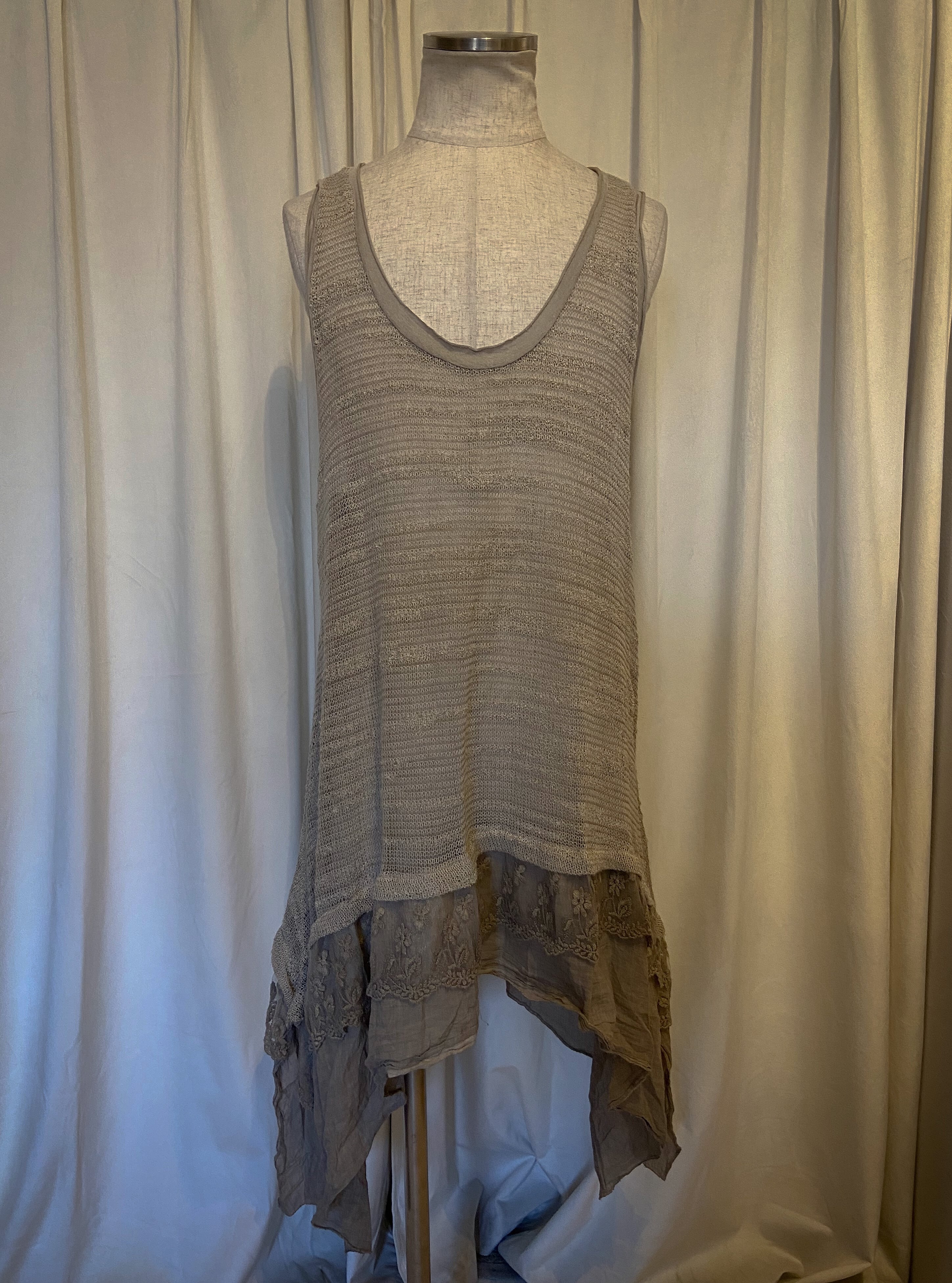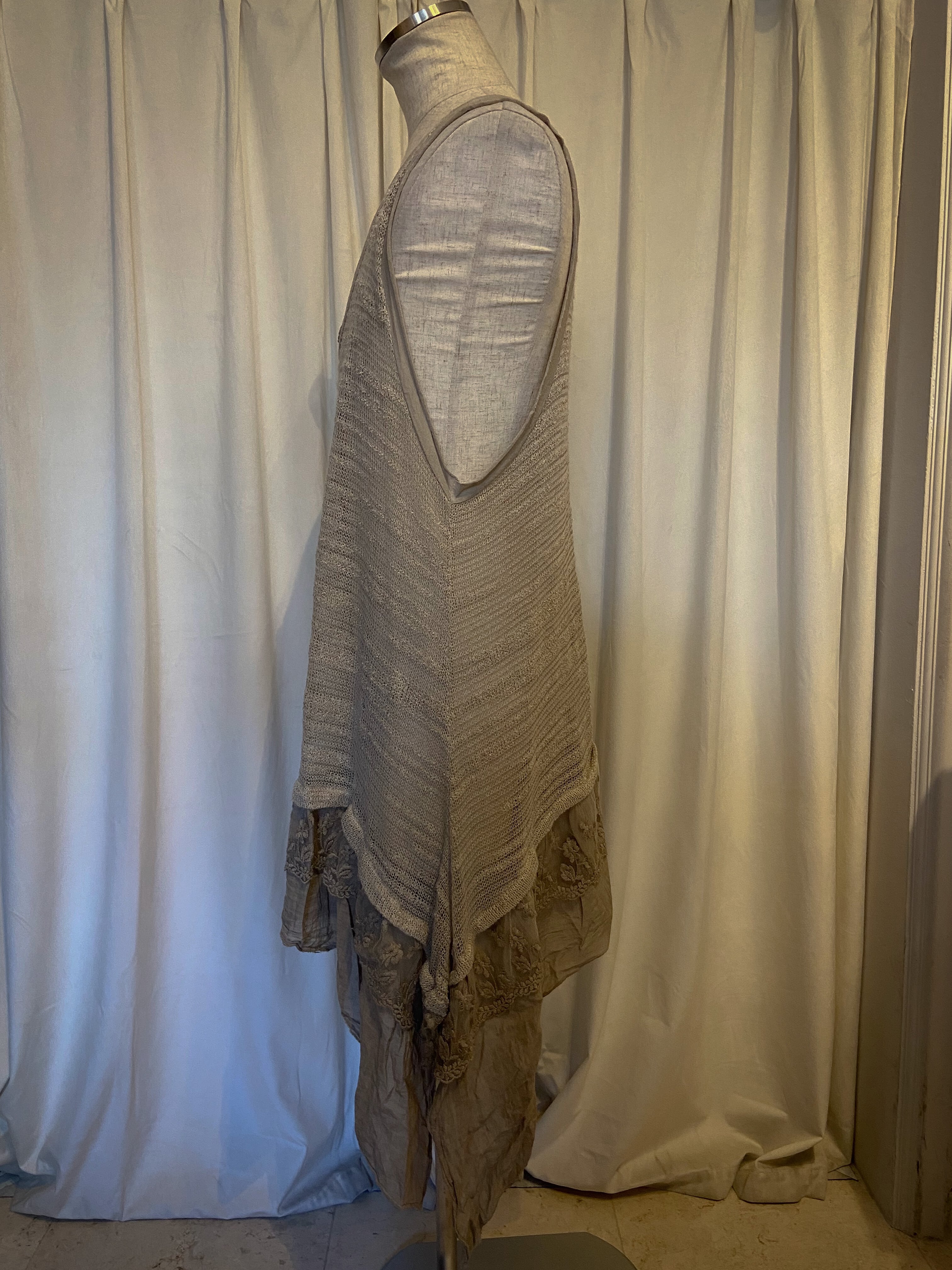 [Italy] Beige Asymmetry Lace Hem Cami