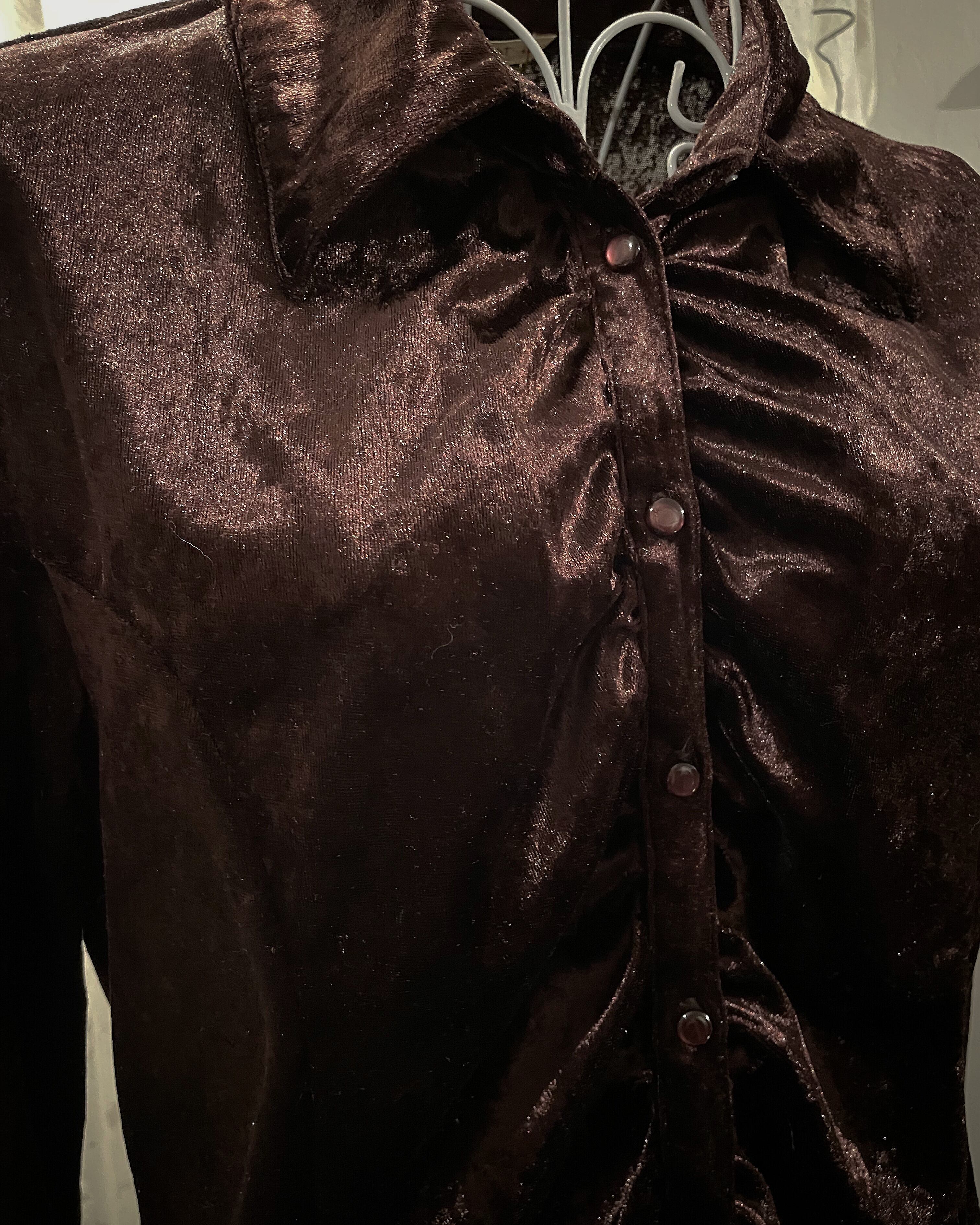 brownred velour shirt