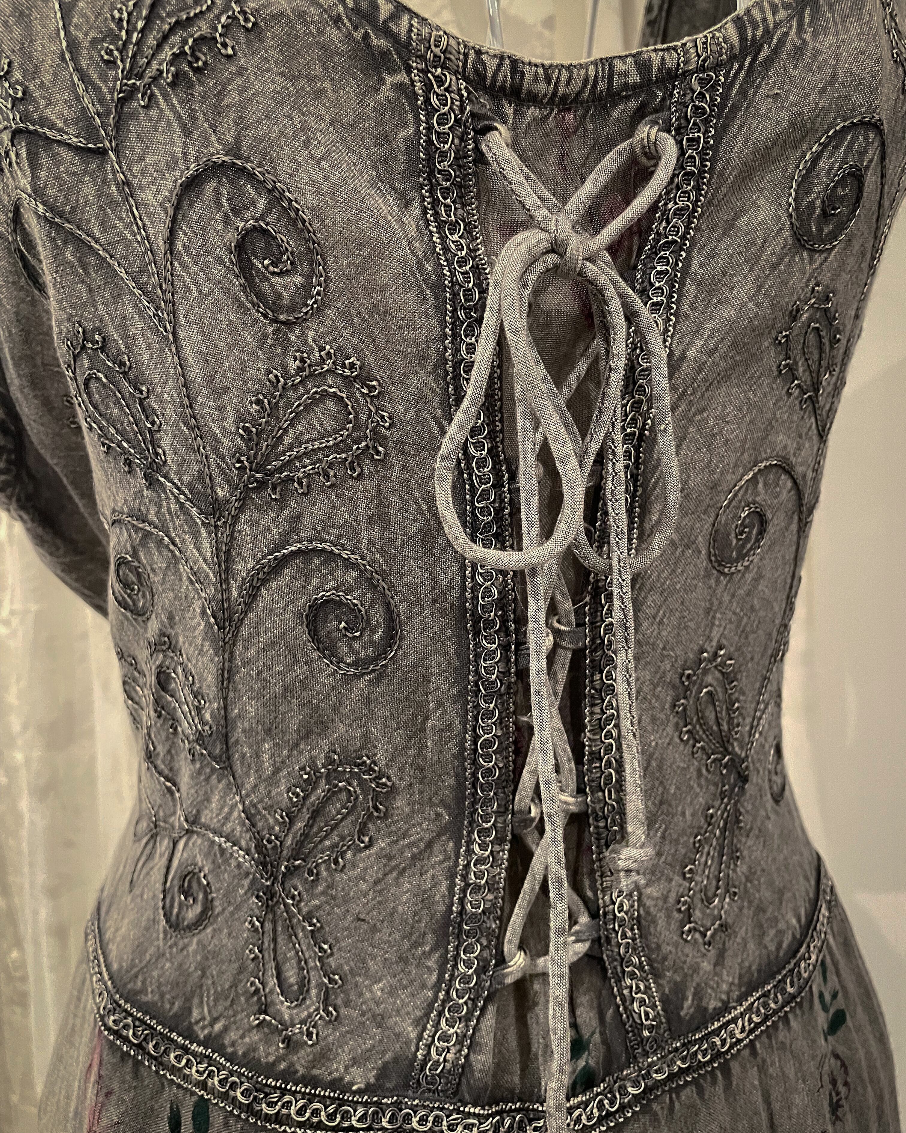 Embroidered Sleeveless Grey LaceUp Dress
