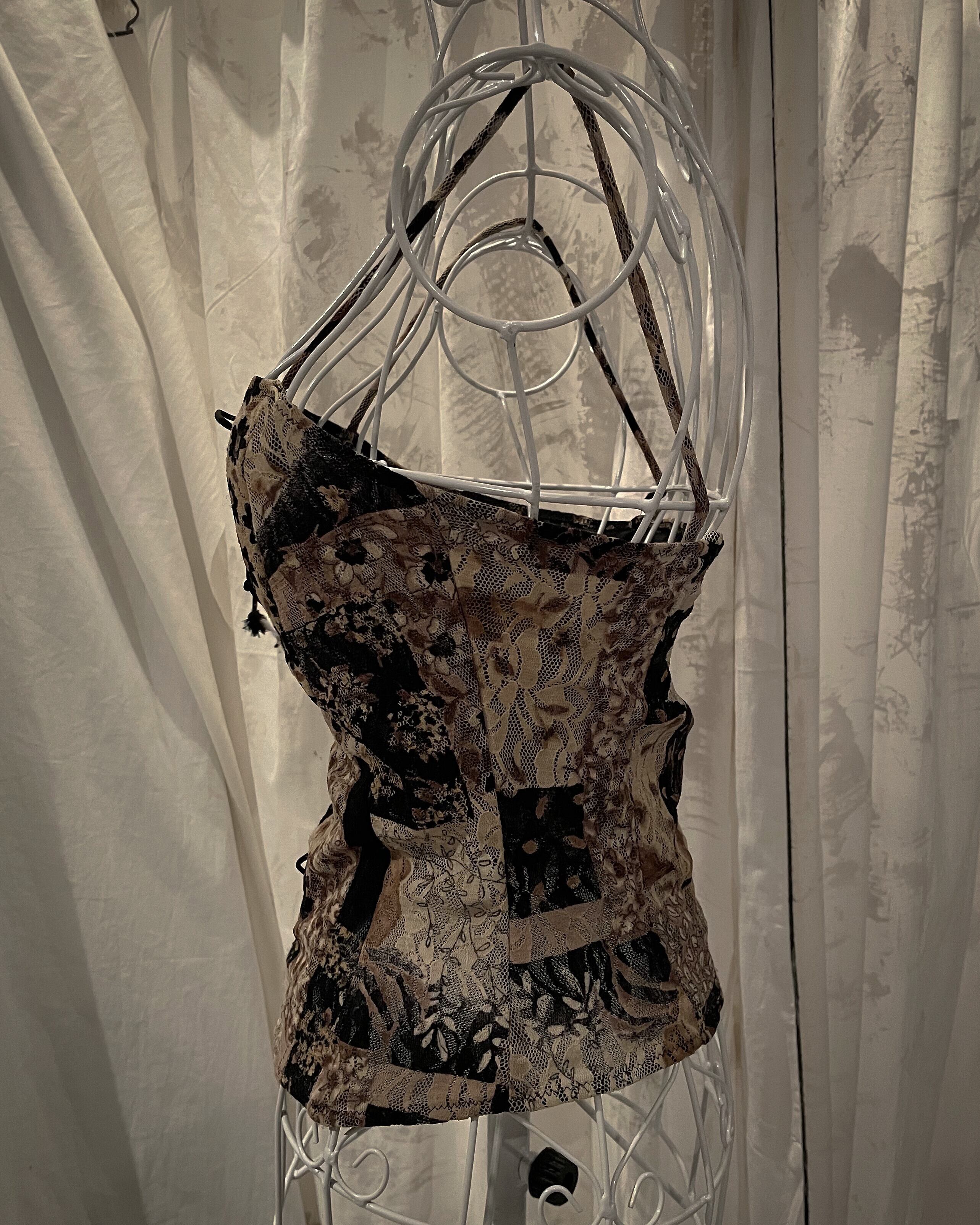 Fairygrunge Floral Patterns Patchwork LaceUp Camisole