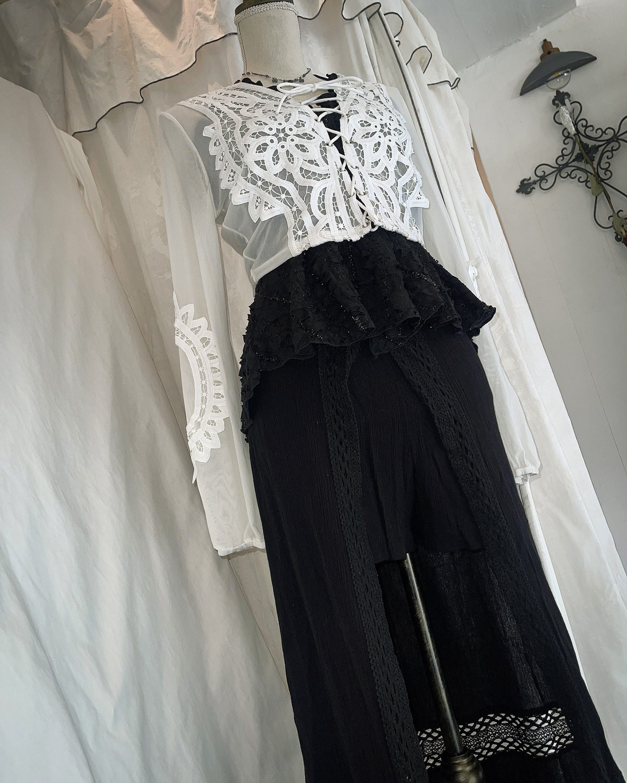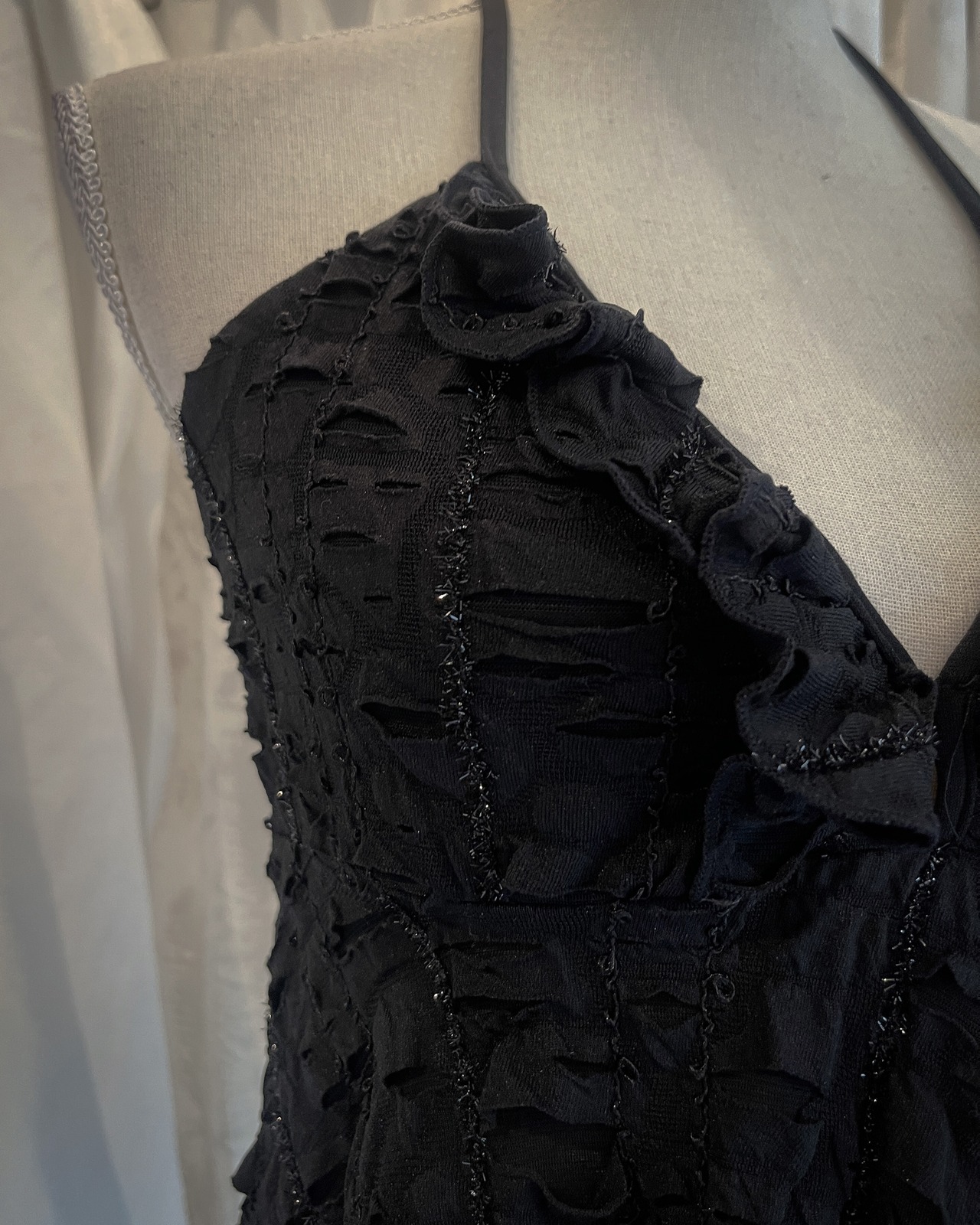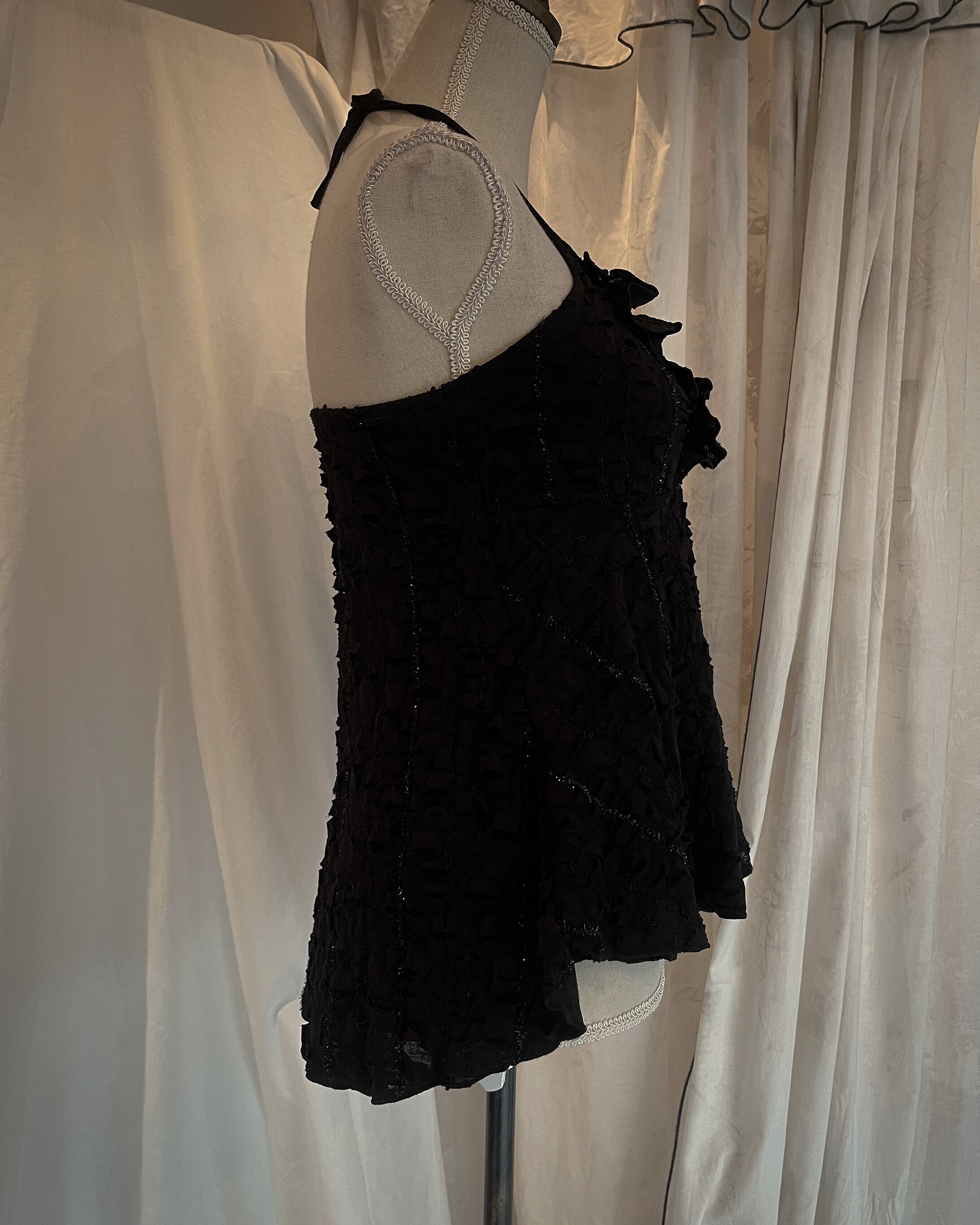 Overlapping Lace Glittering Black Halterneck Camisole