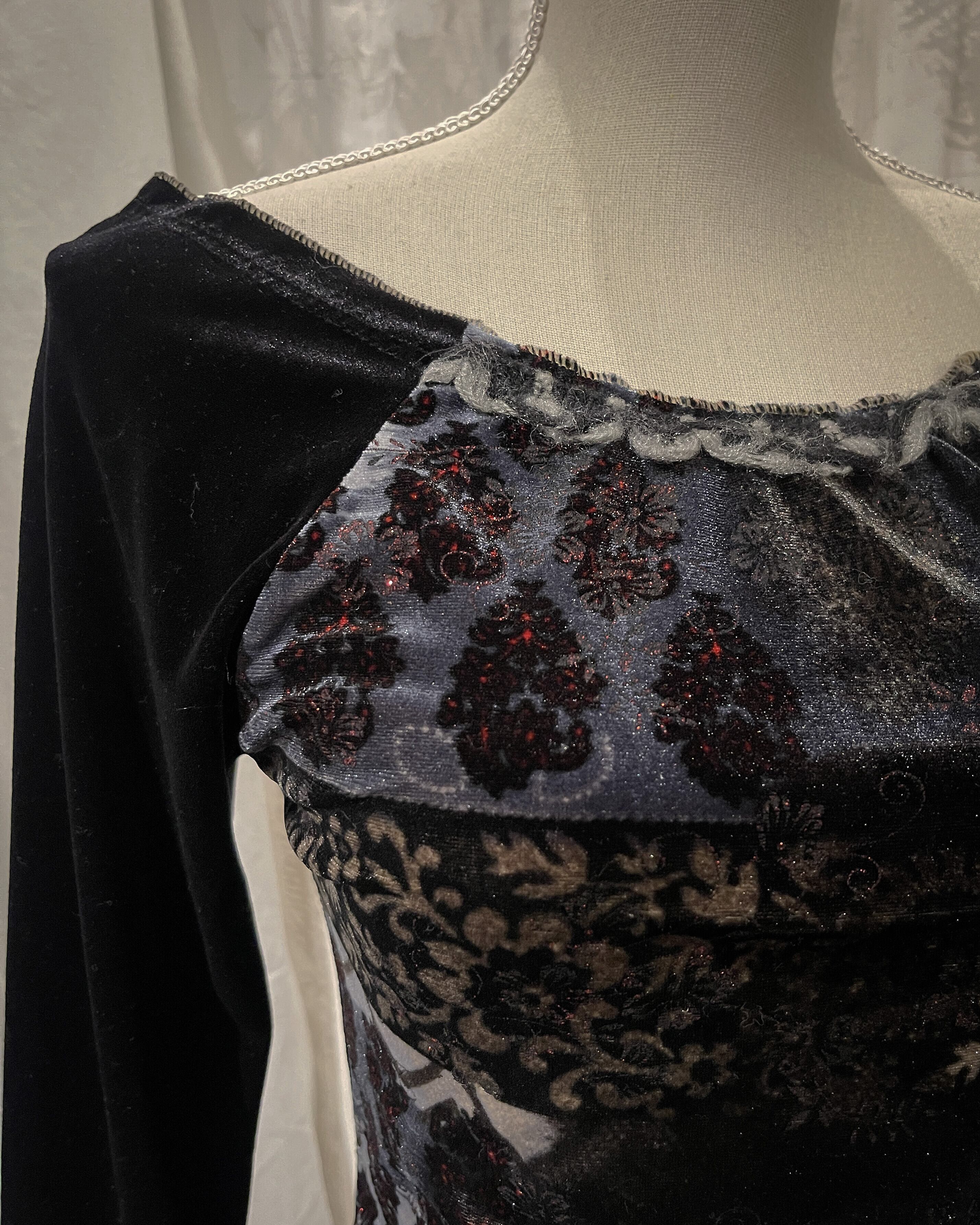 Velour Asymmetrical Mandarin Sleeve Blouse