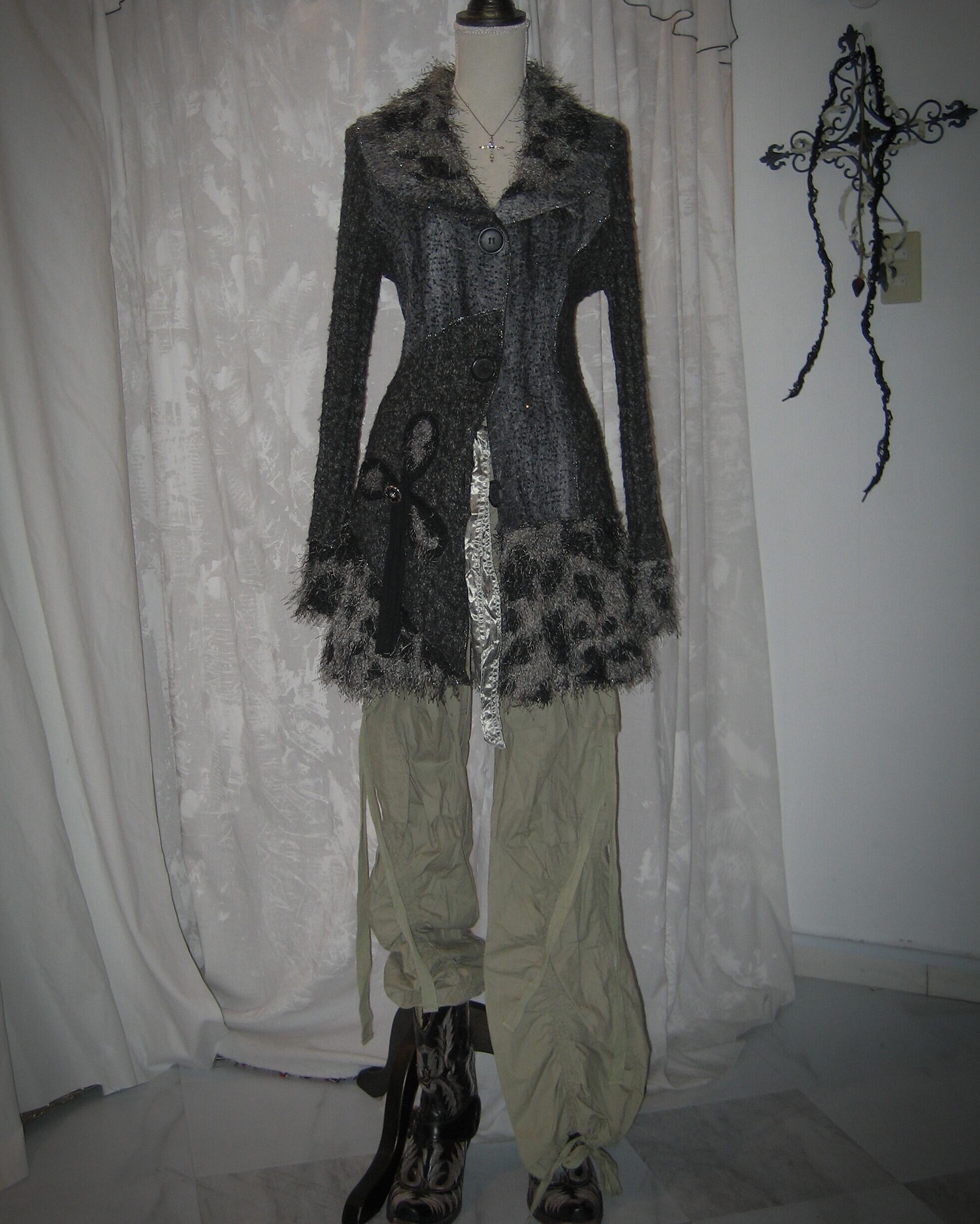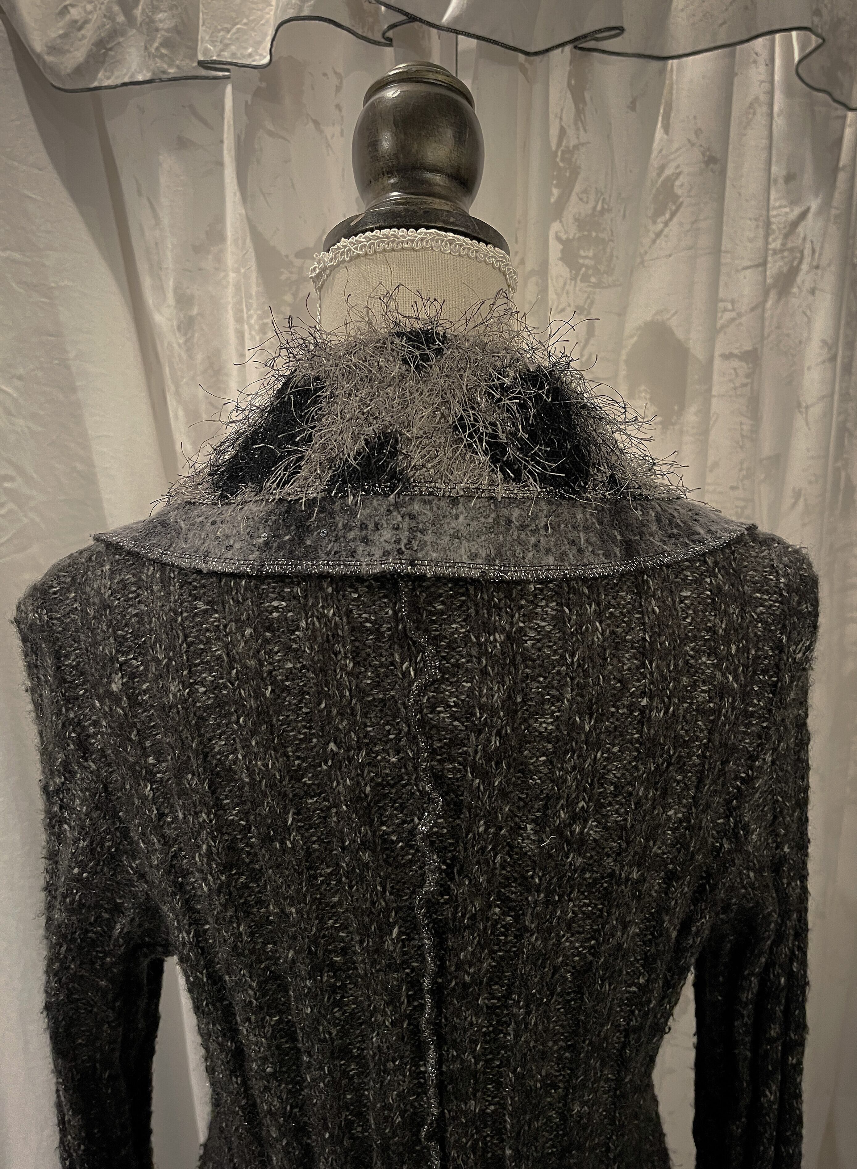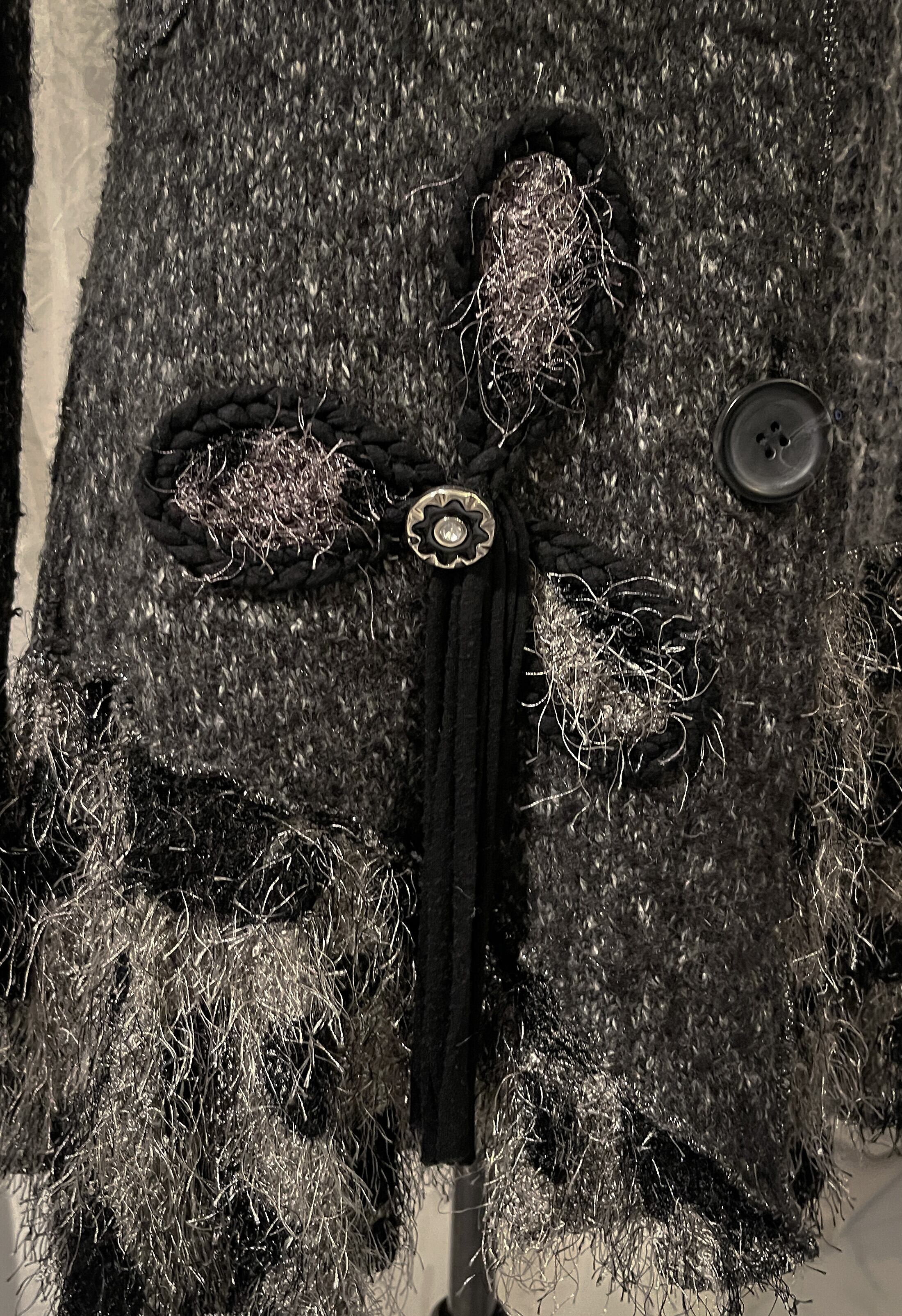 Floral Glitter Gray Knit Cardigan