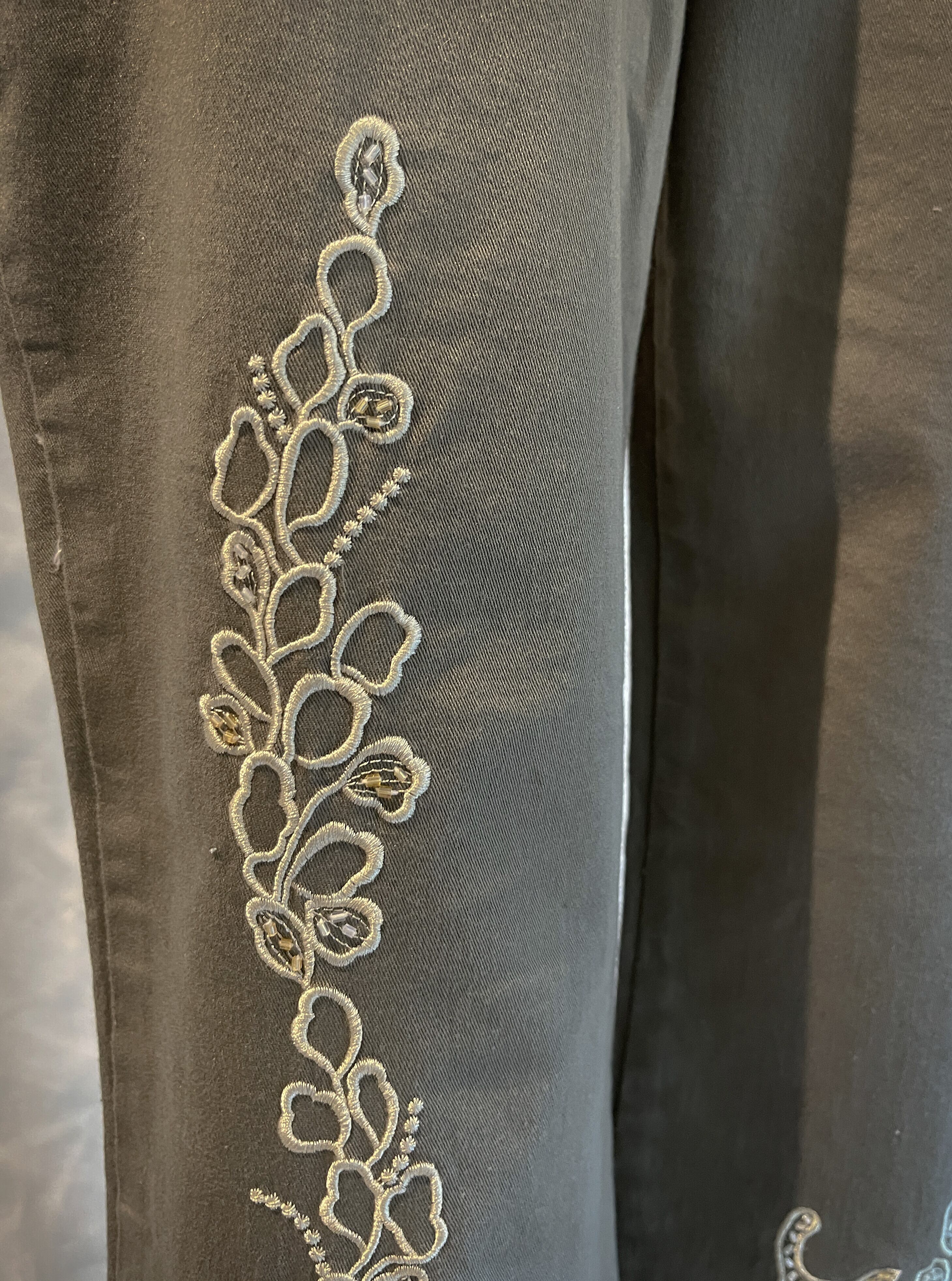 Fairygrunge Embroidered Khaki SemiFlared Pants