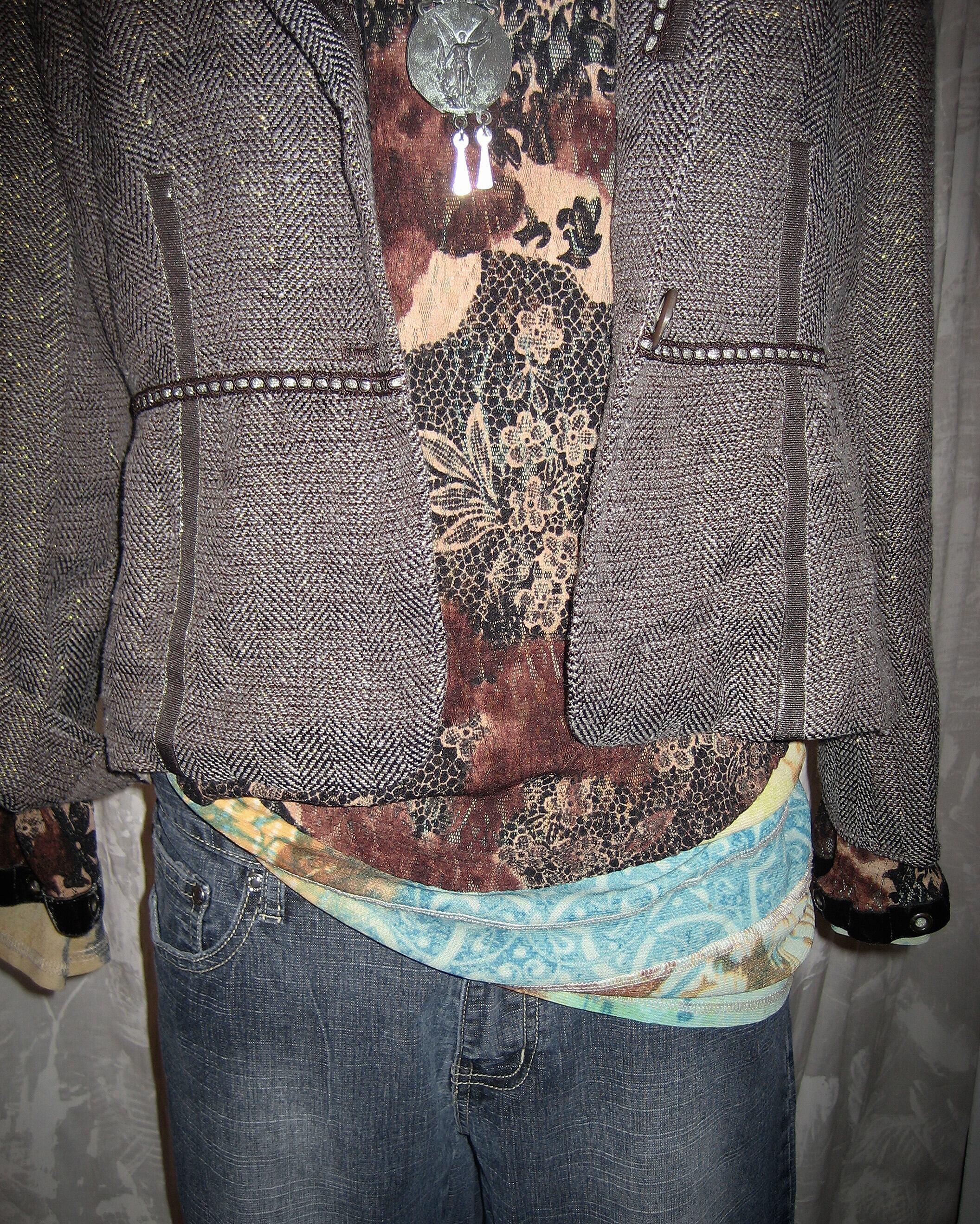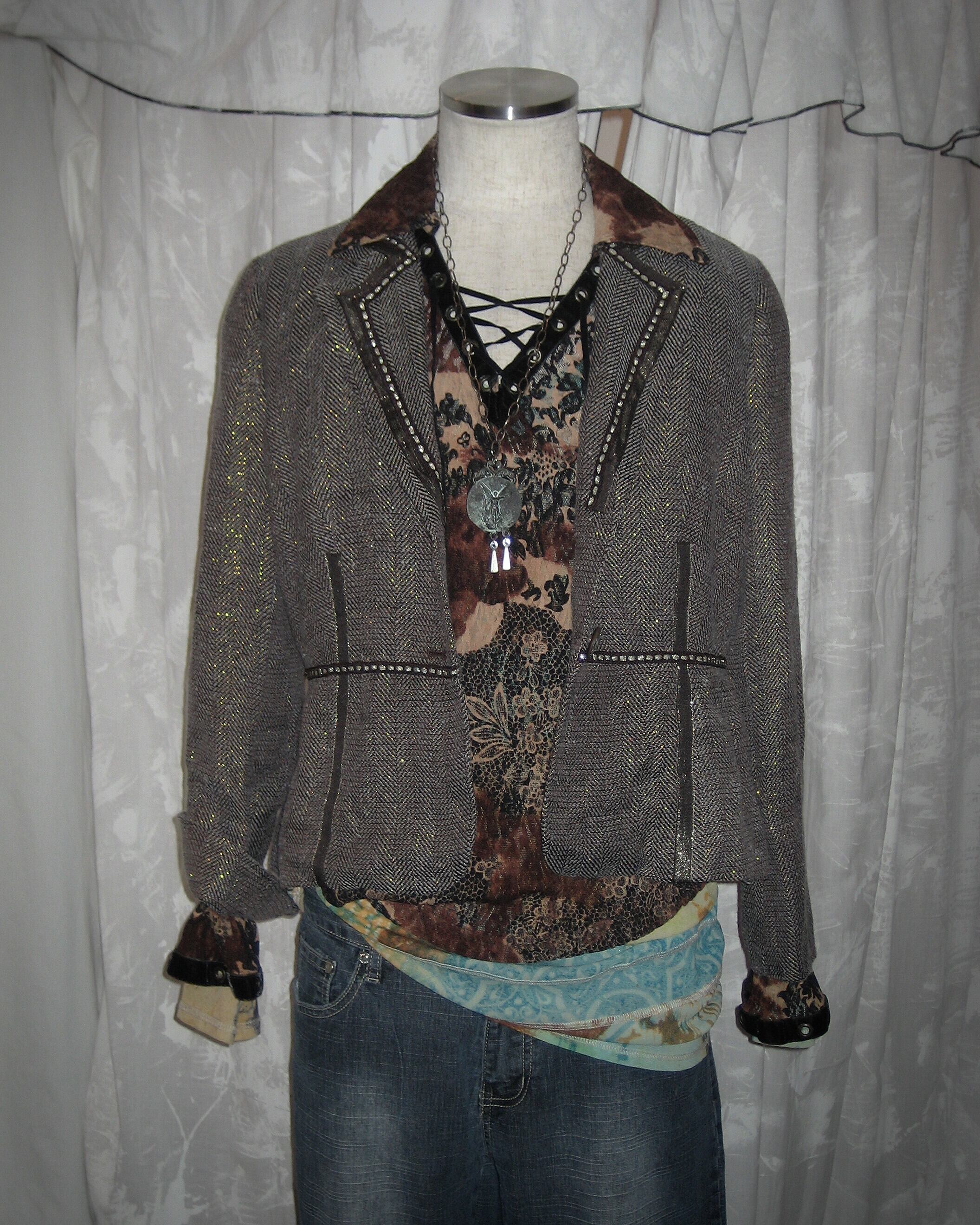Brown Jacquard Tight Tailored Jacket