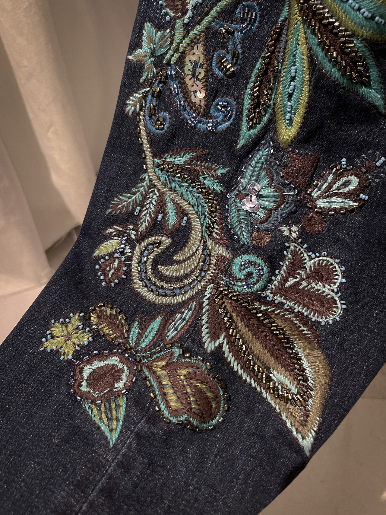 Blue Ivy Embroidery Semi Flare Denim Pants