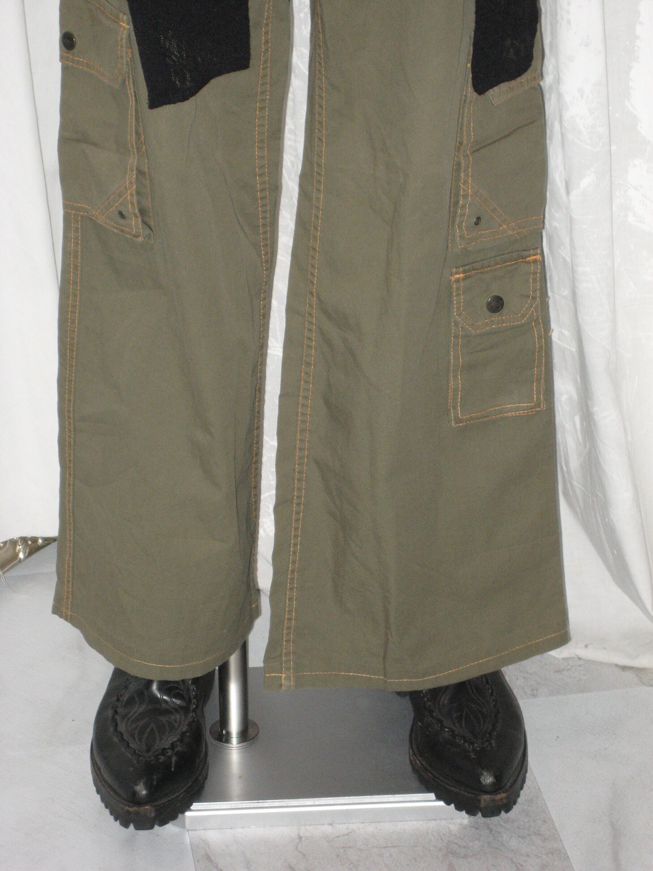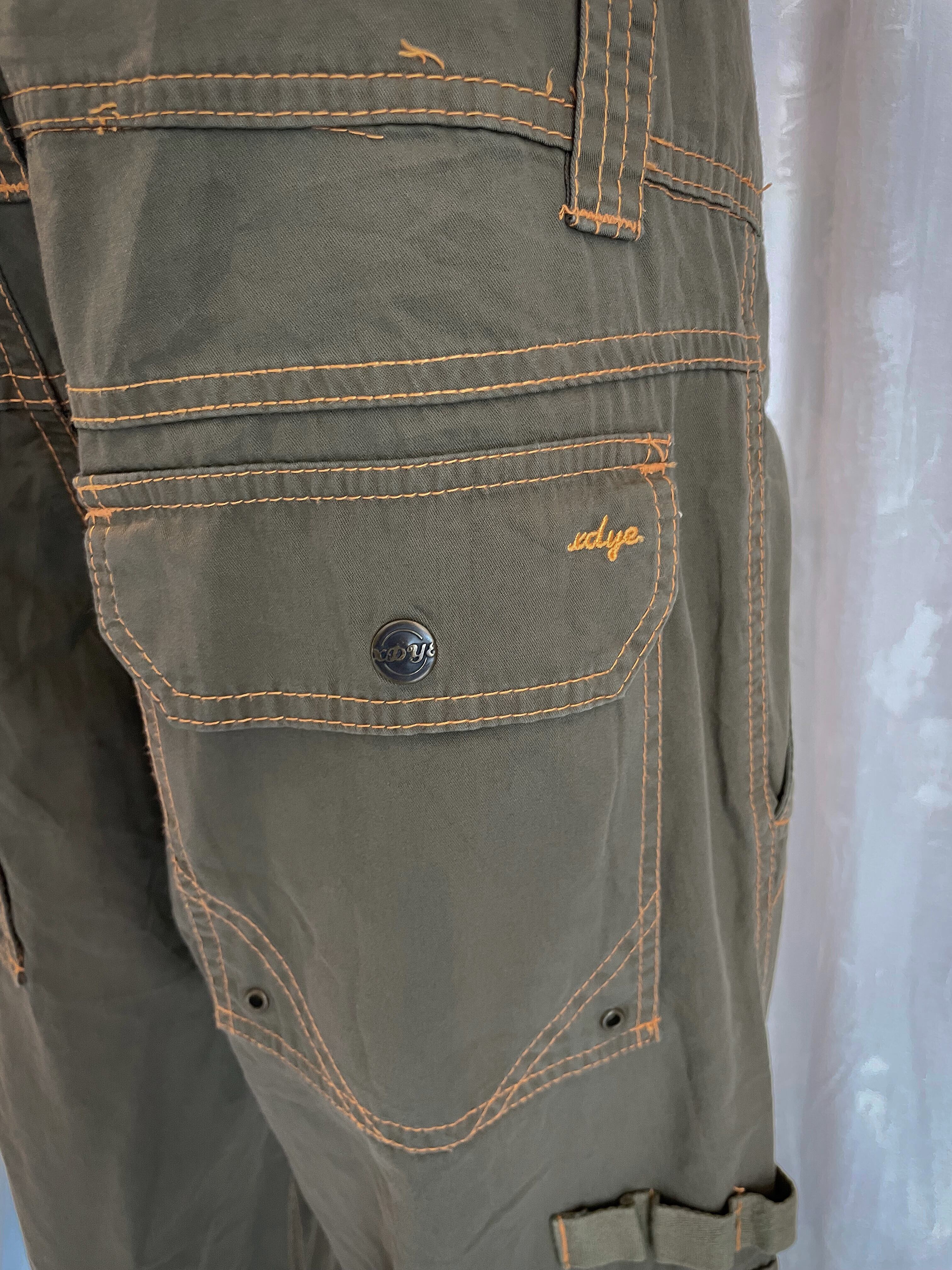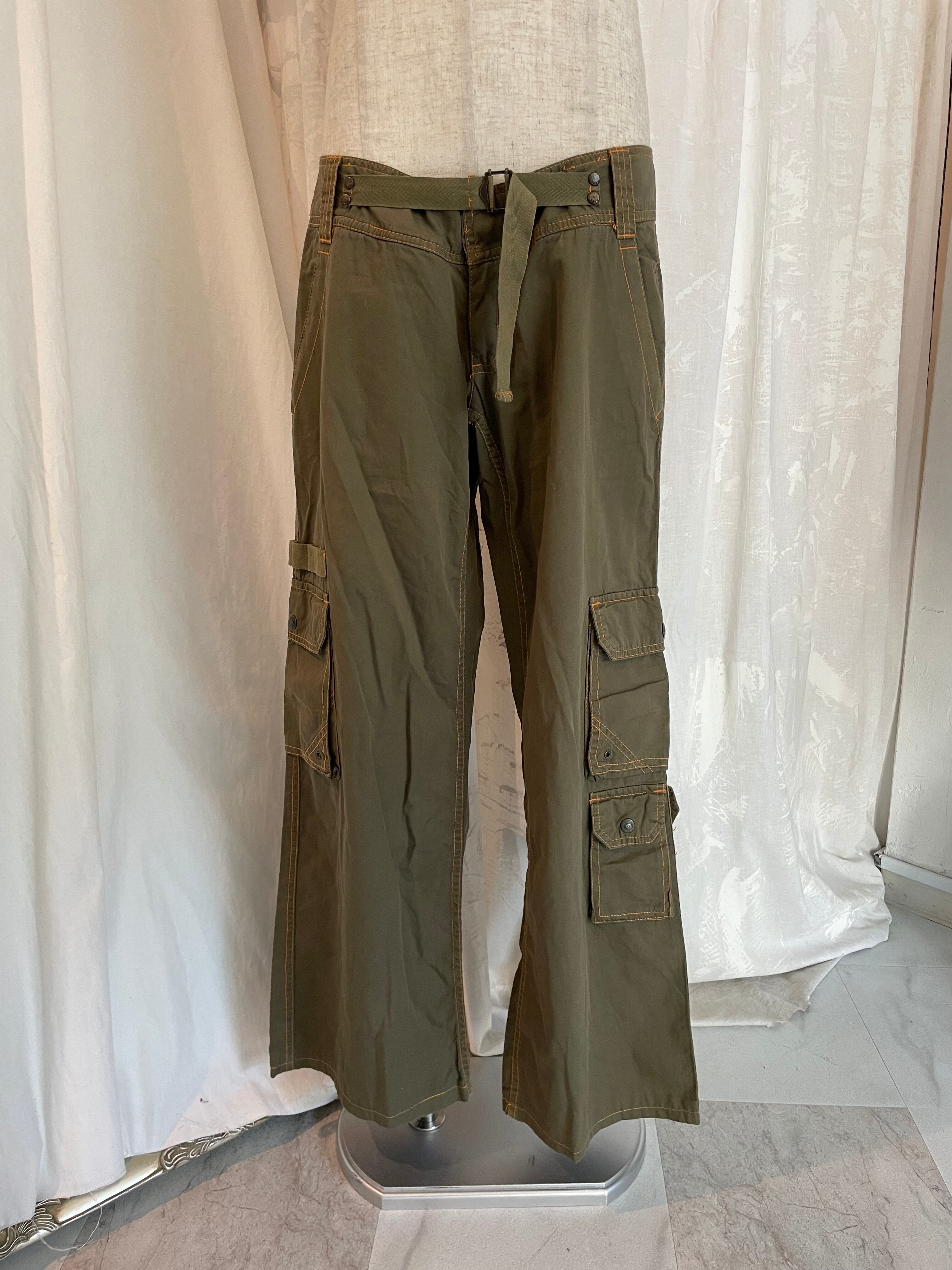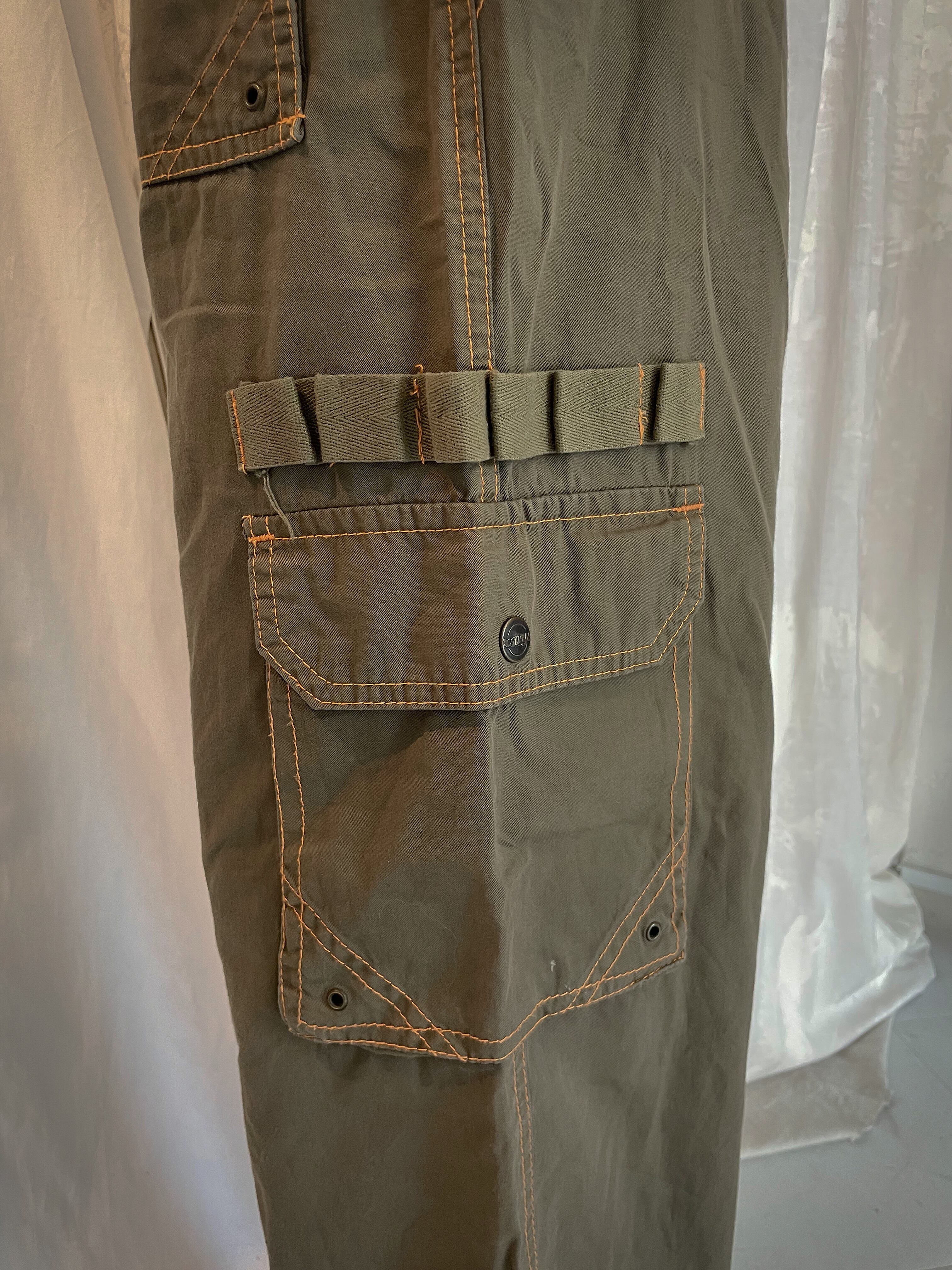 Orange Stitch Khaki Semi Flare Cargo Pants