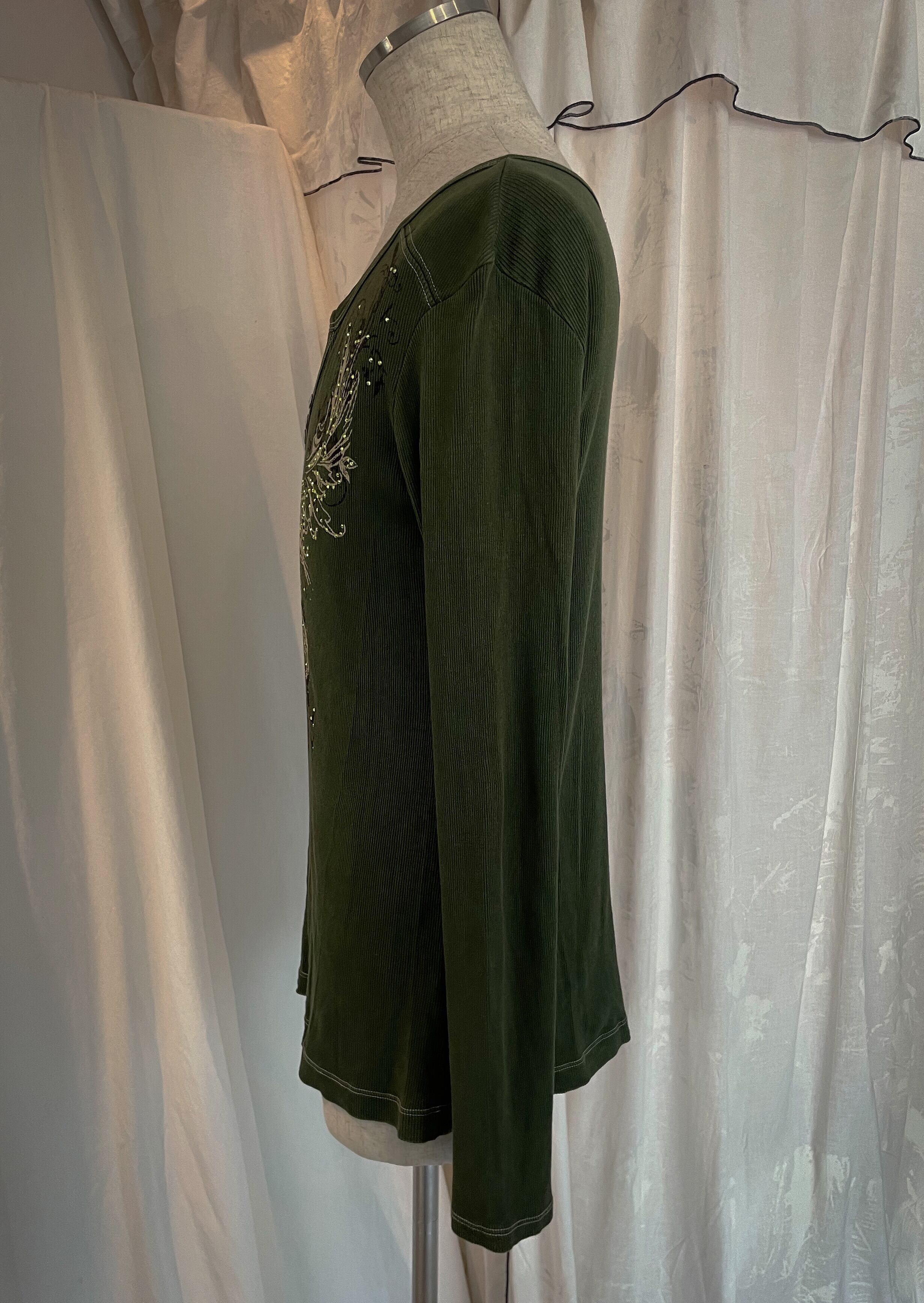 Dark Green Vneck Long Tee
