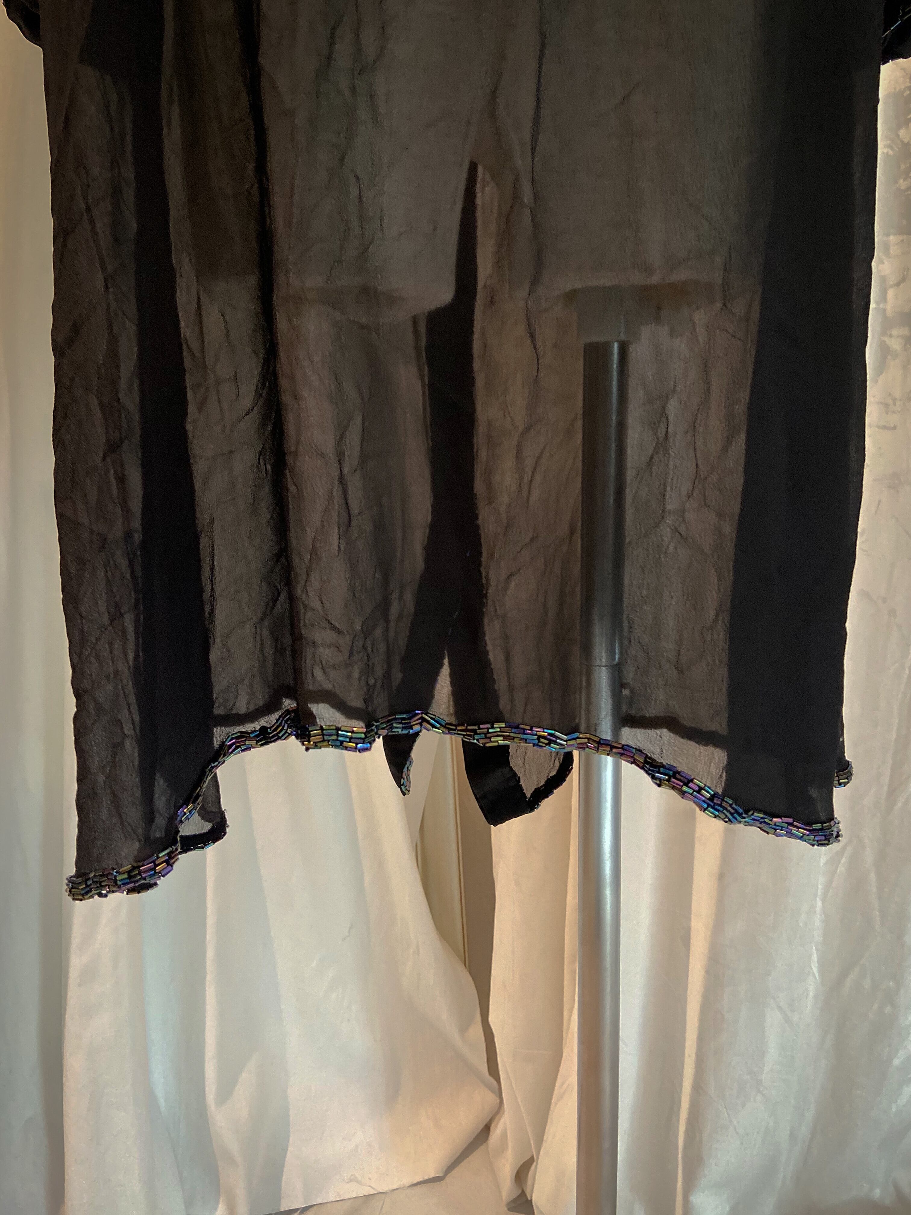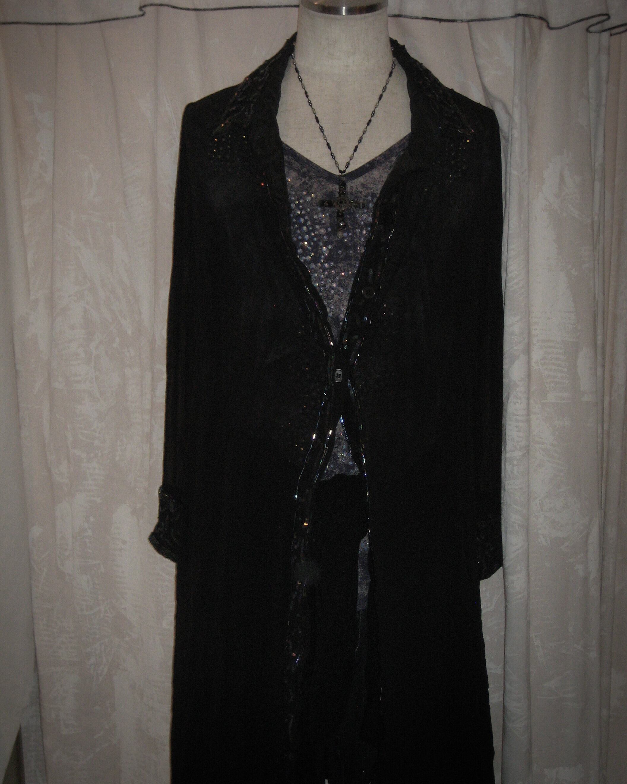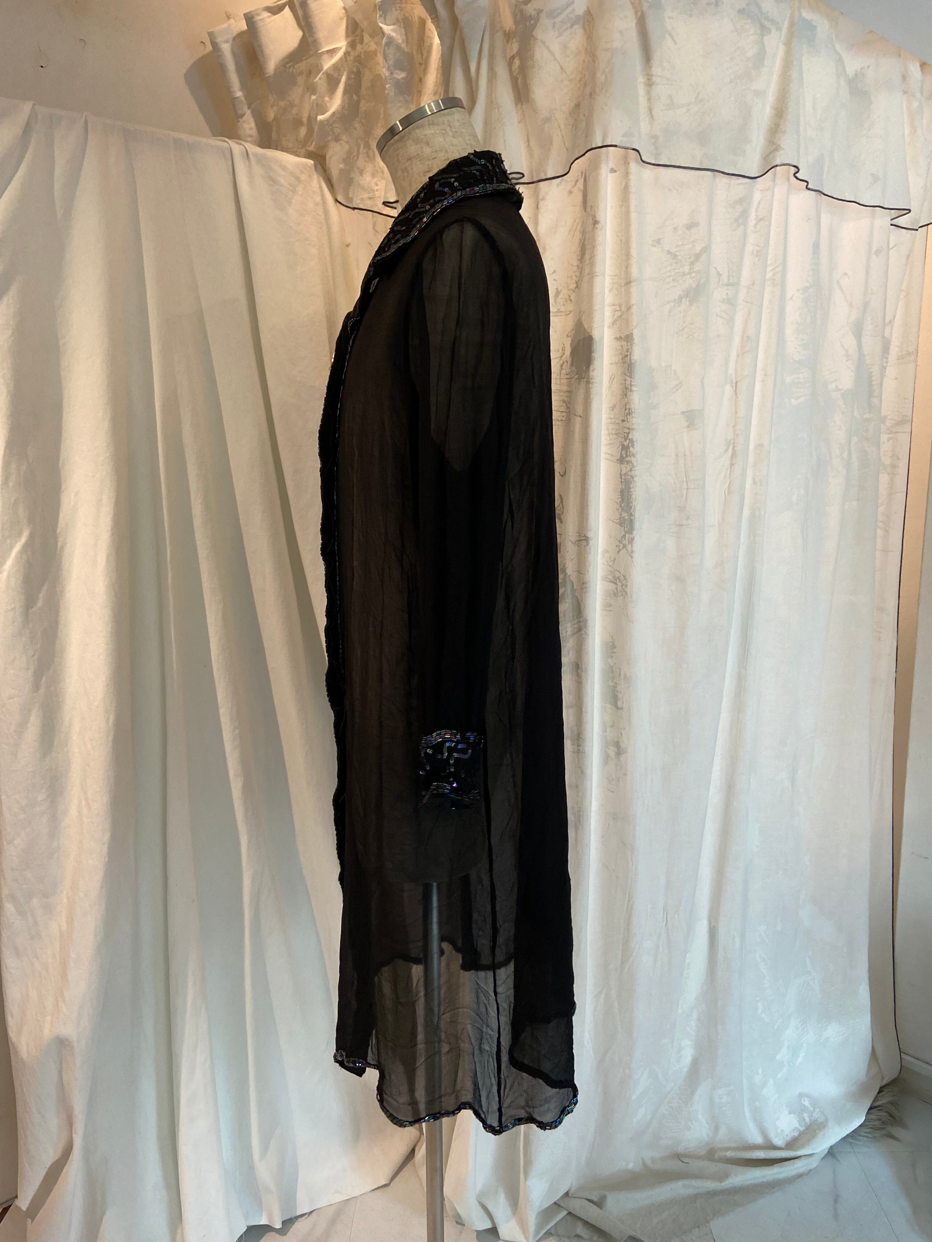 Rainbow collar Sheer Black Long Shirt