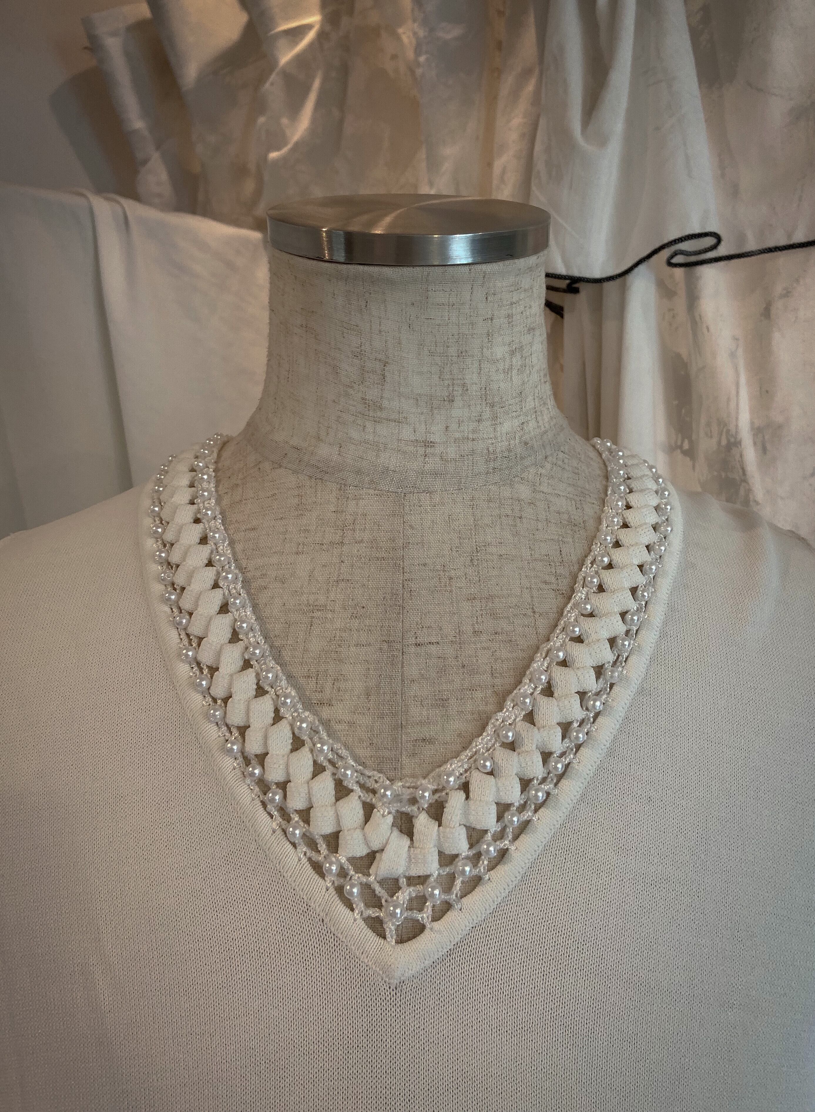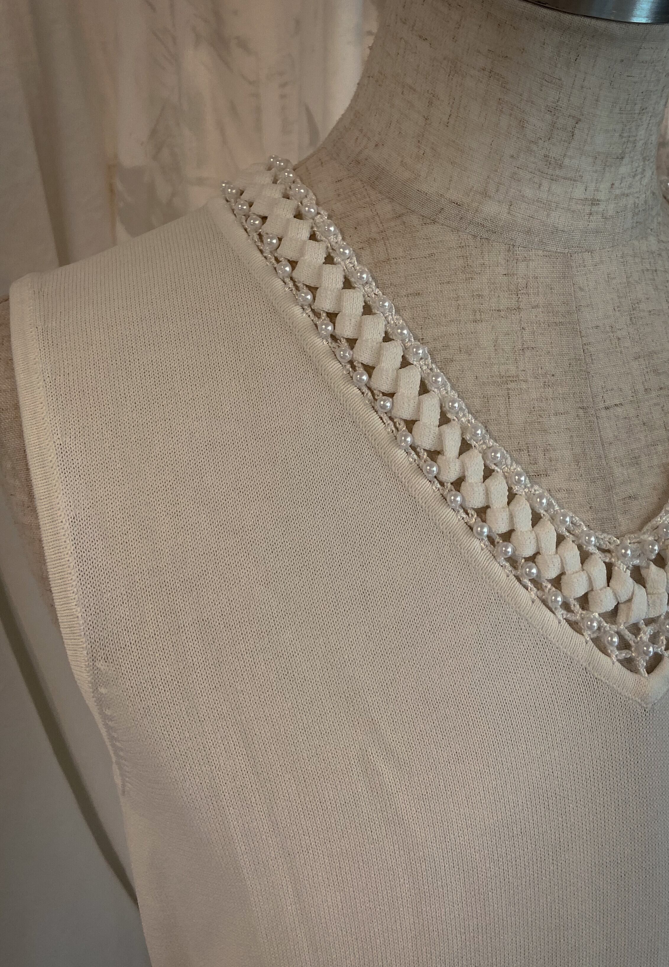 White Pearl Knitted Collar TankTop