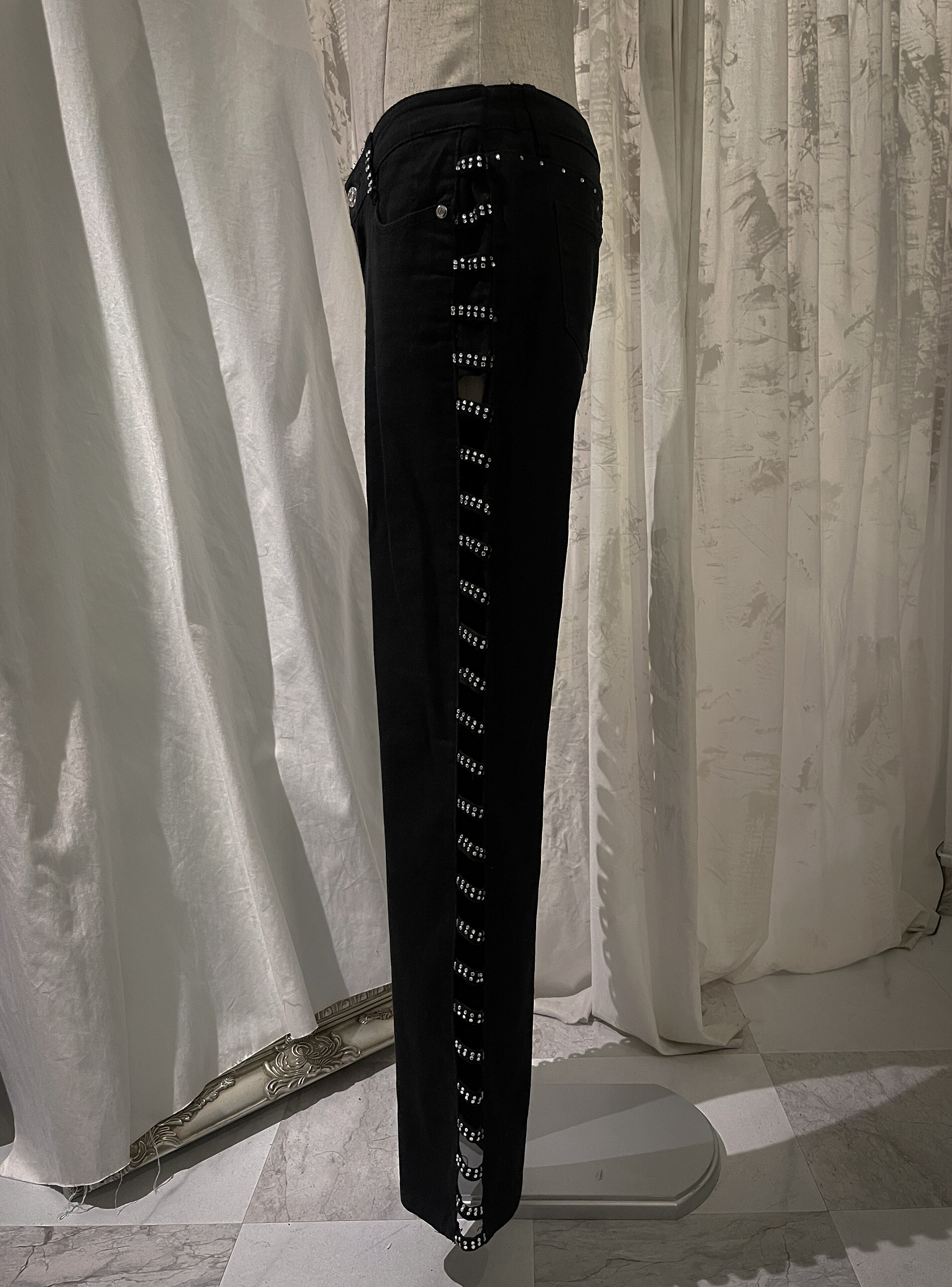 Side Rhinestone Black Pants