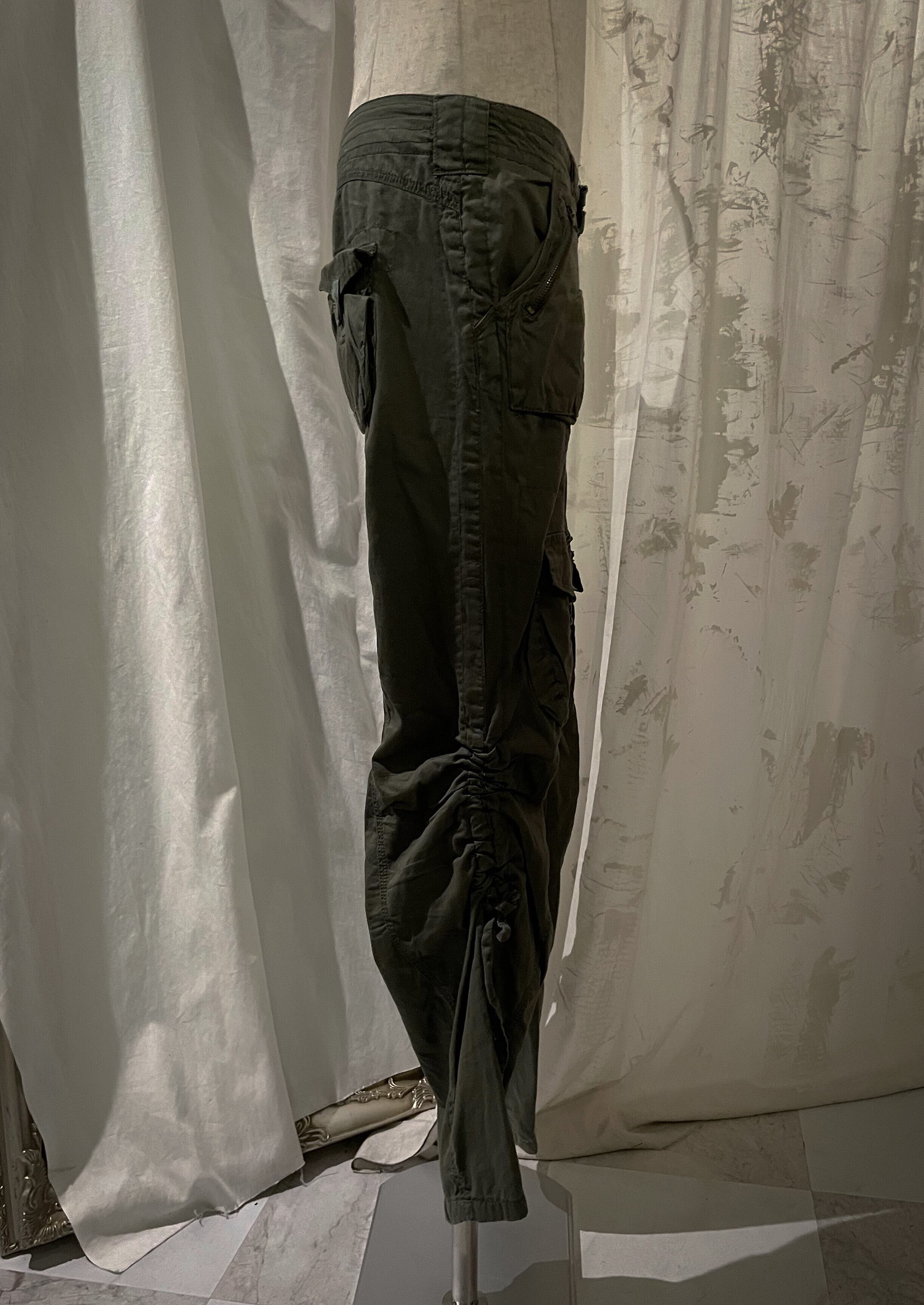 Side Gathered Khaki Cargo Pants