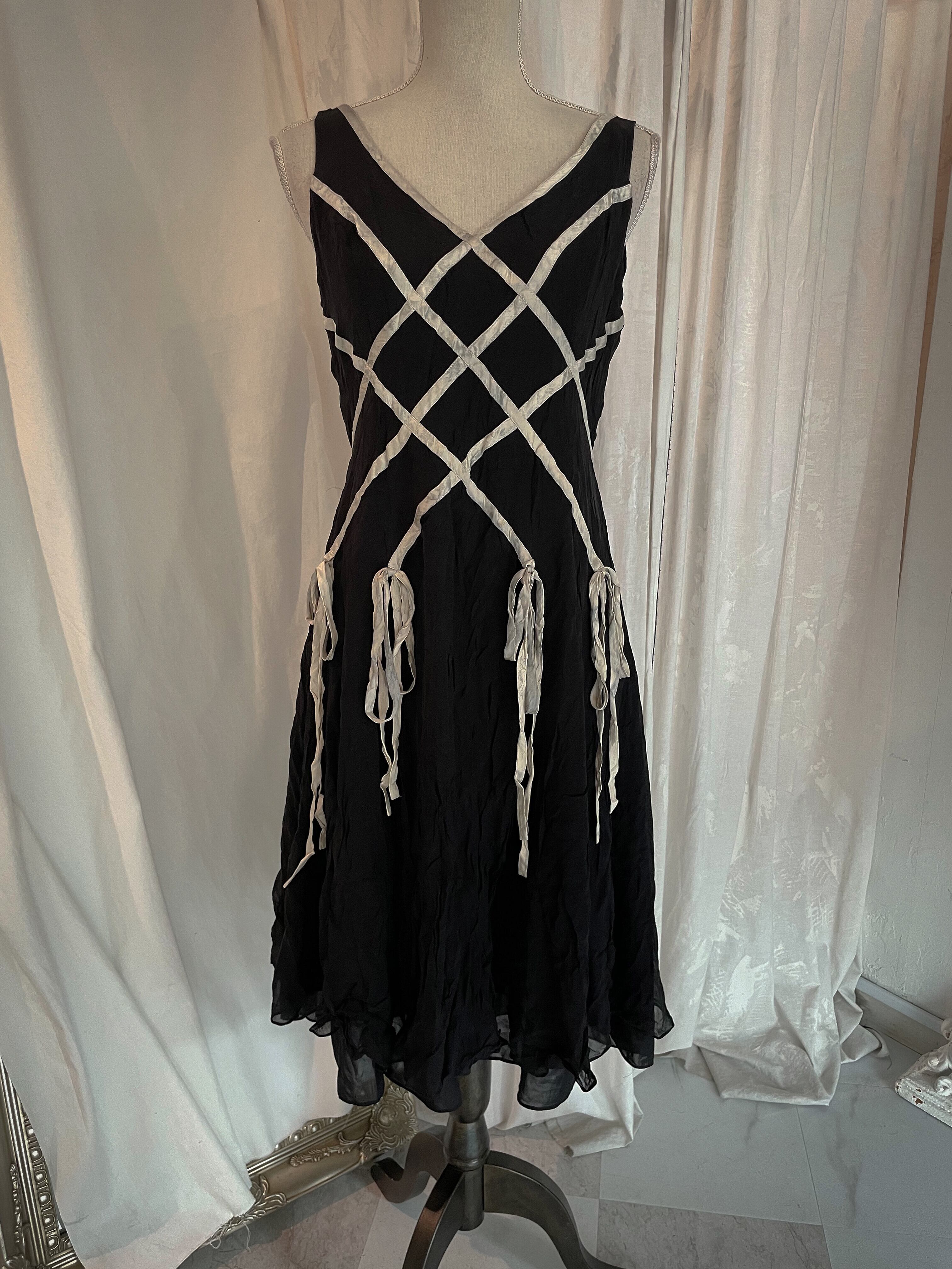 Plaid Ribbon Black Dress