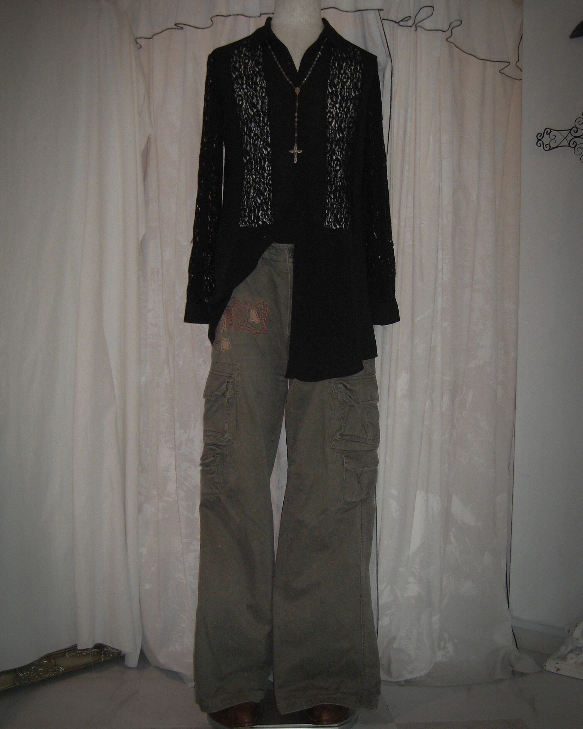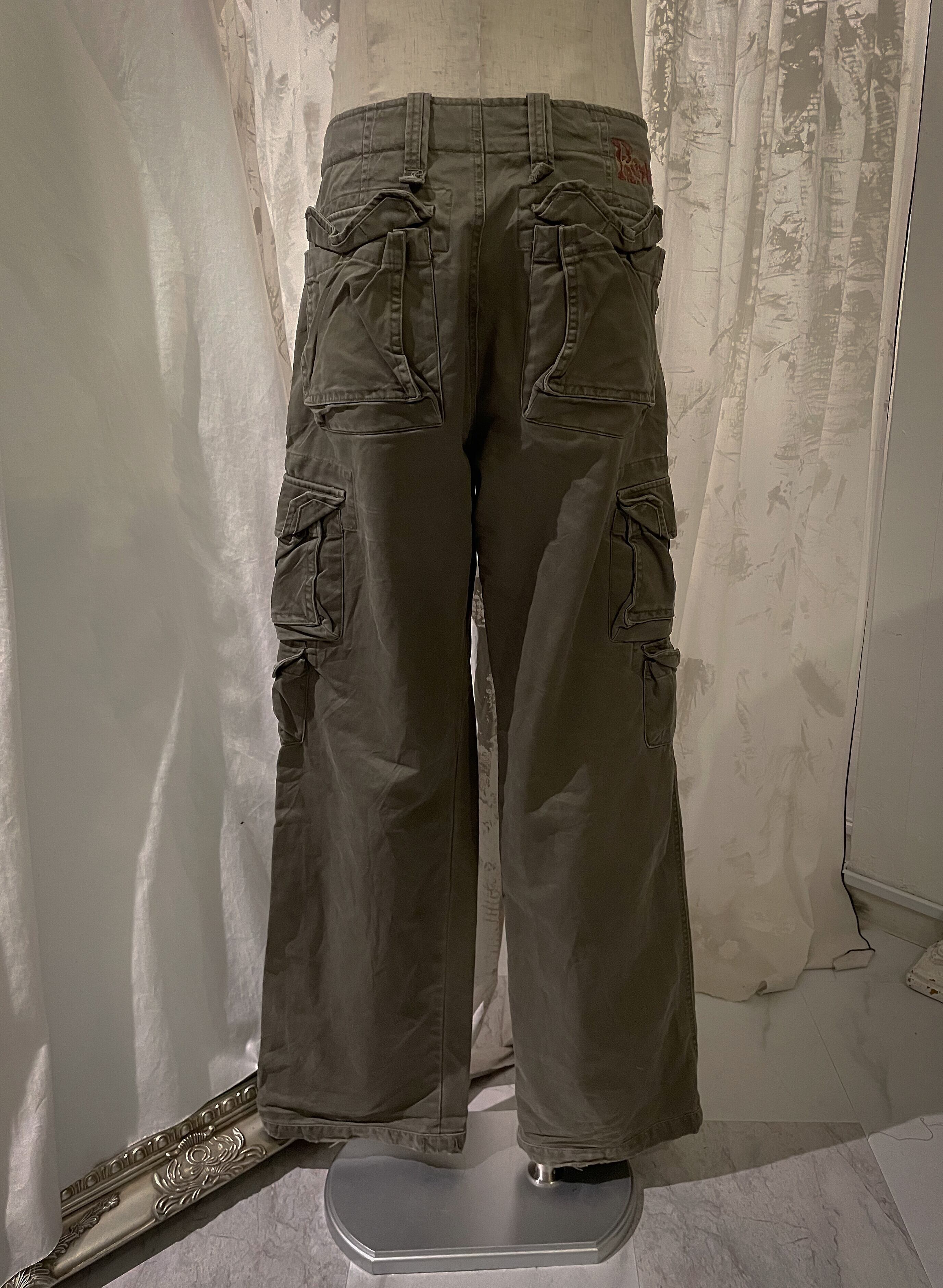 Embroidered Khaki Wide Cargo Pants
