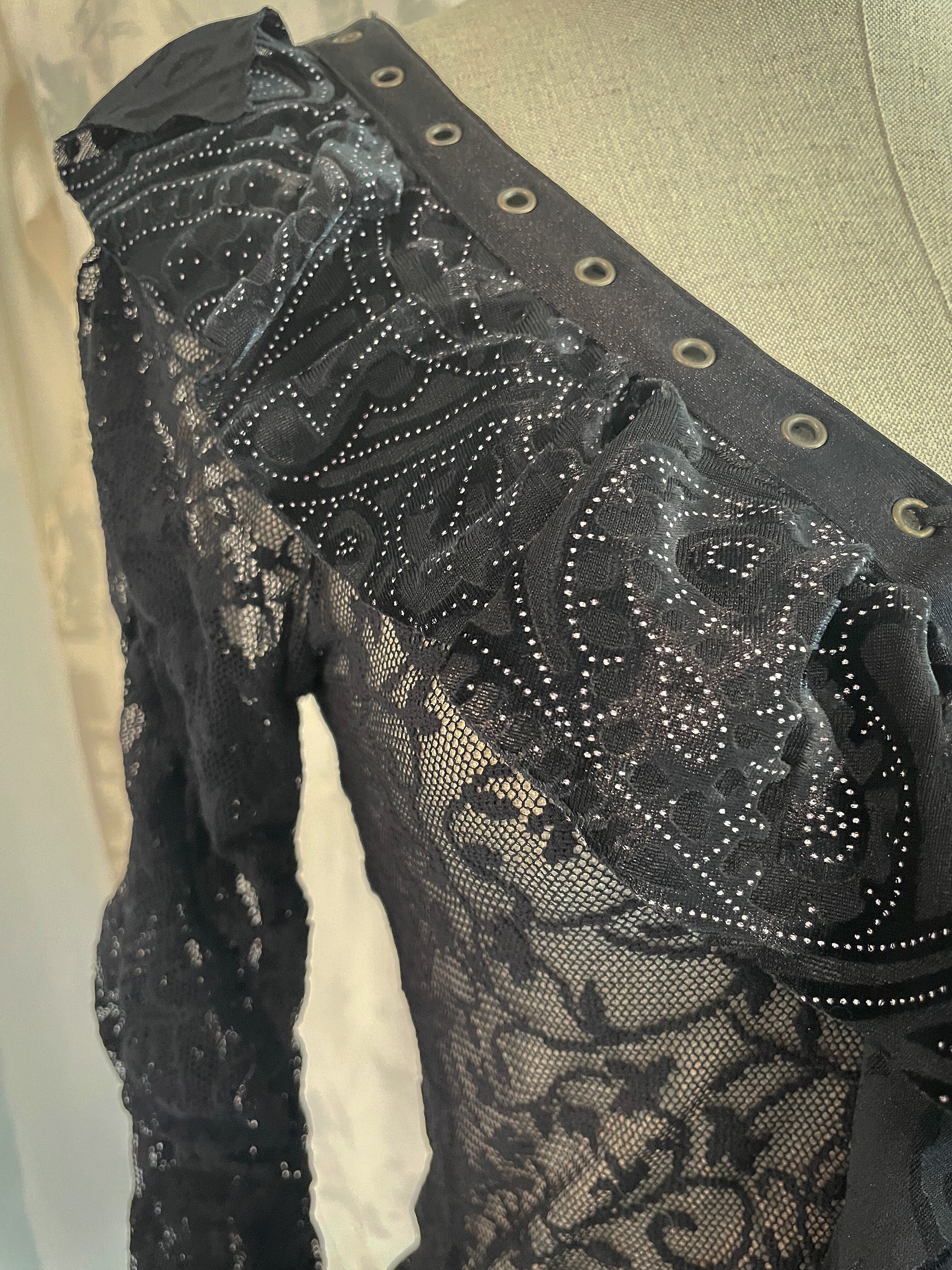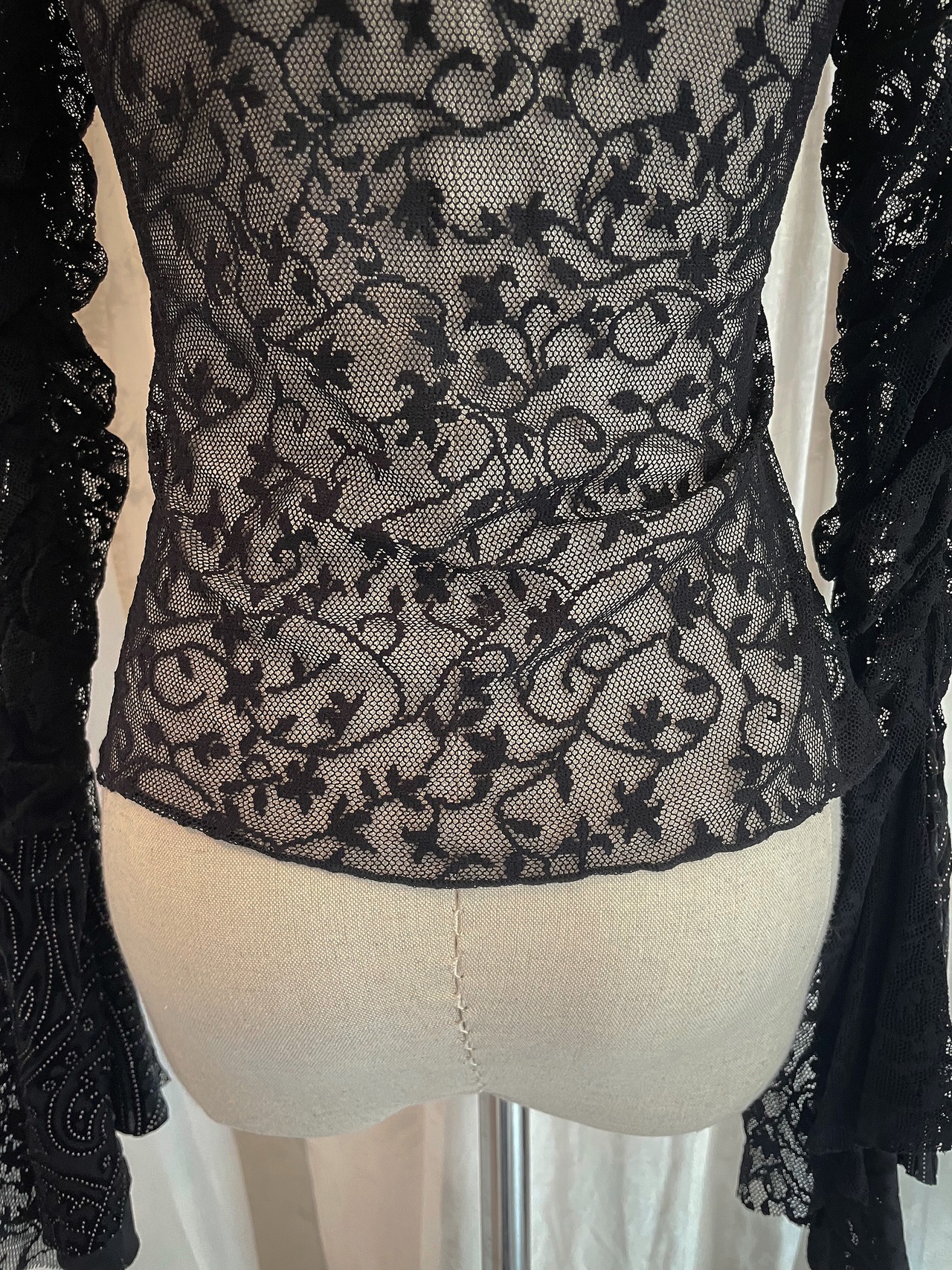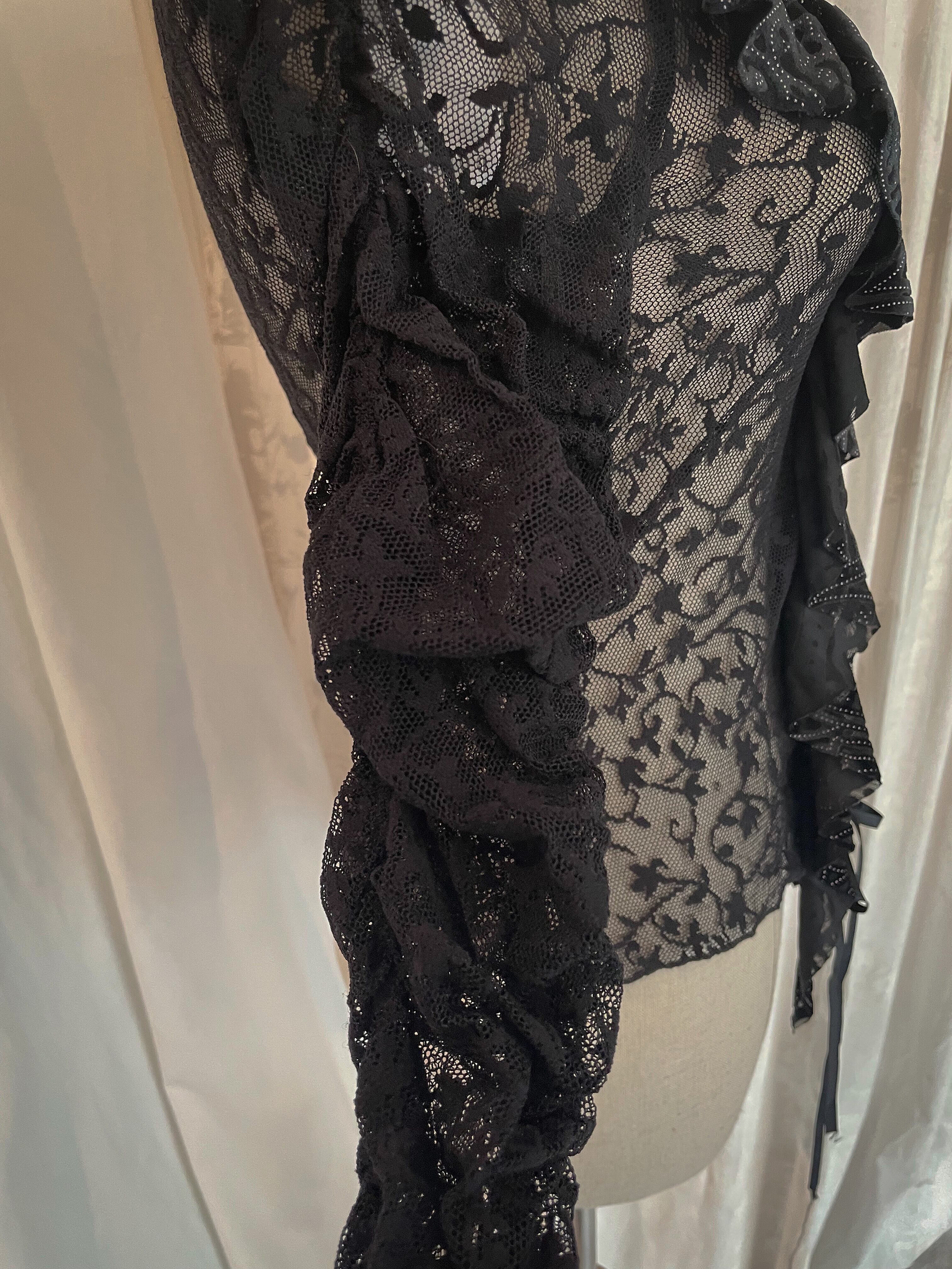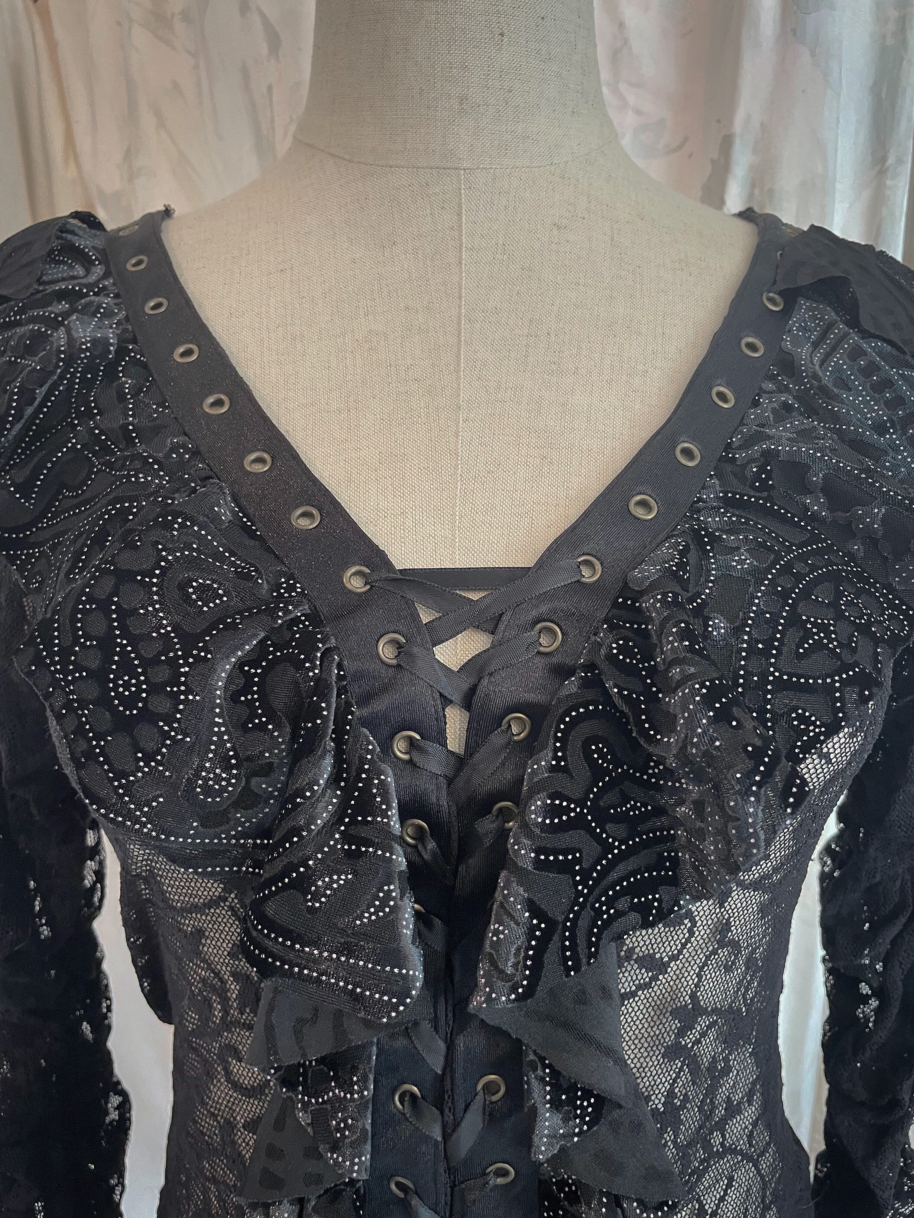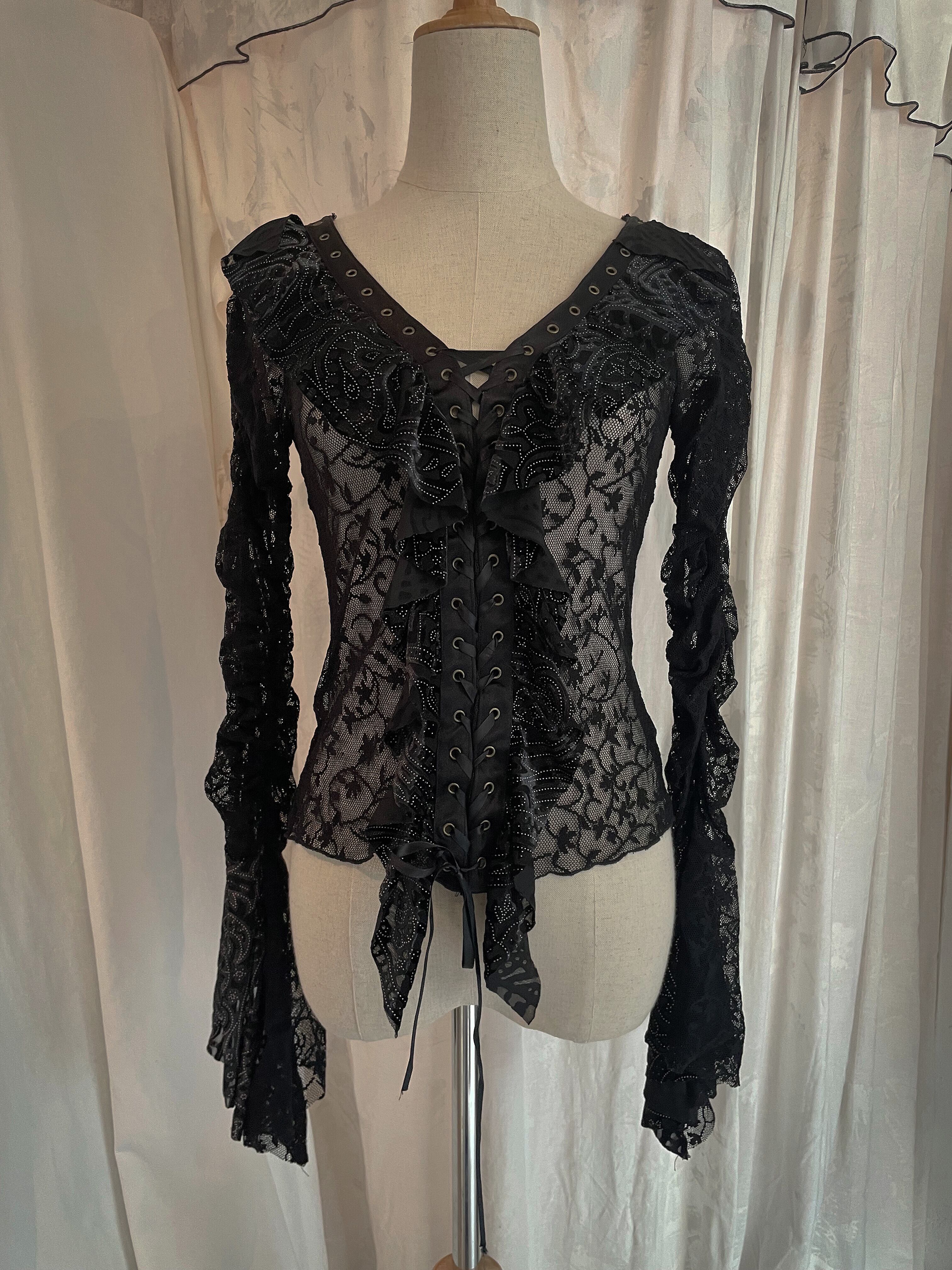 LaceUp Black Sheer Frill Blouse
