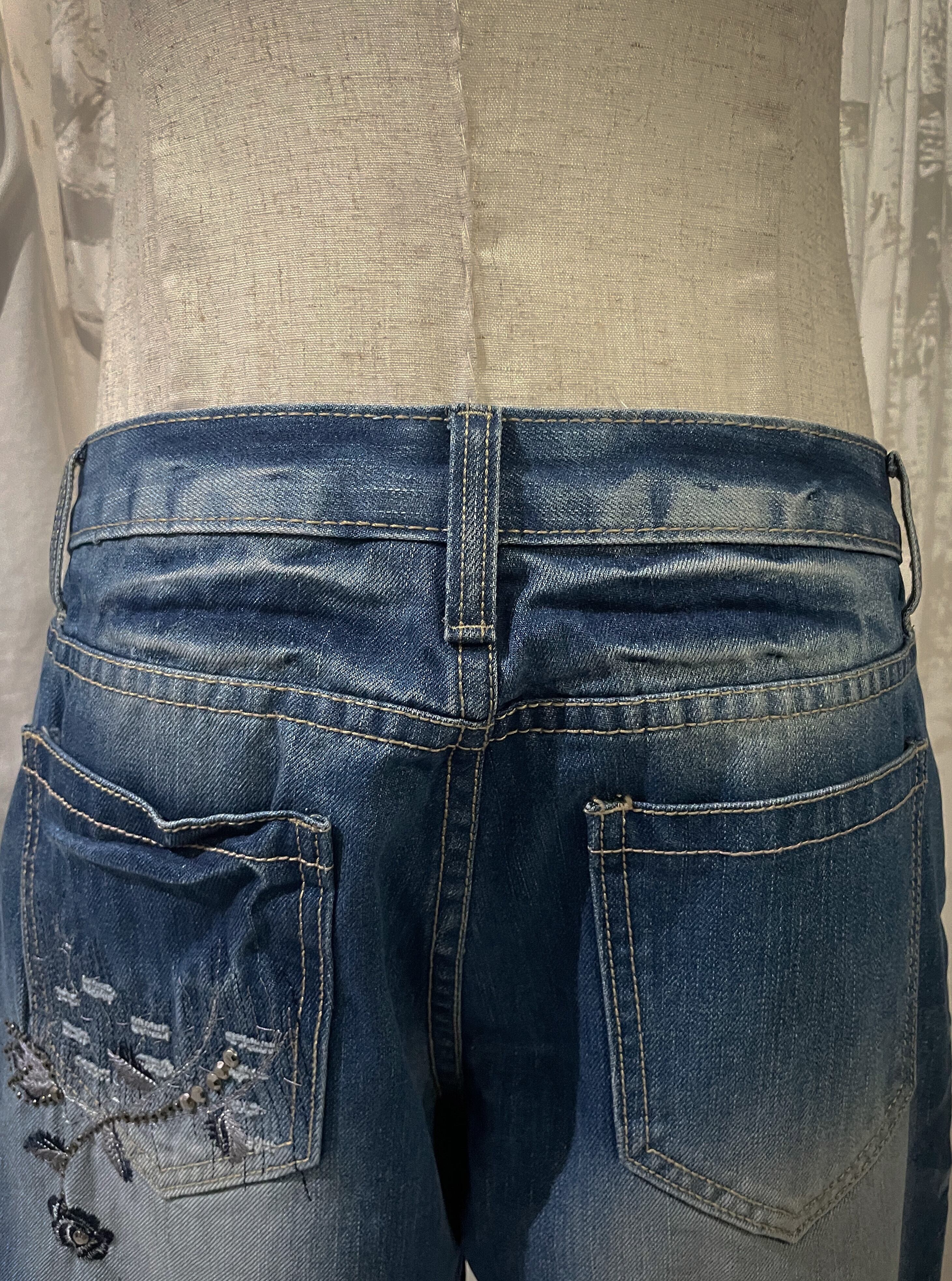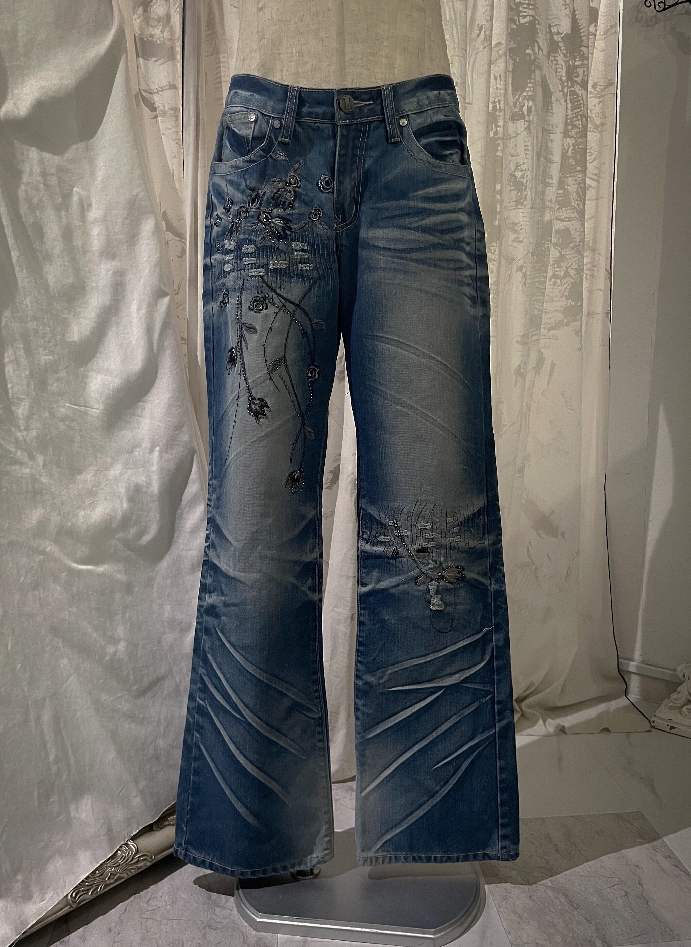 Rose Embroidered Flared Denim Pants