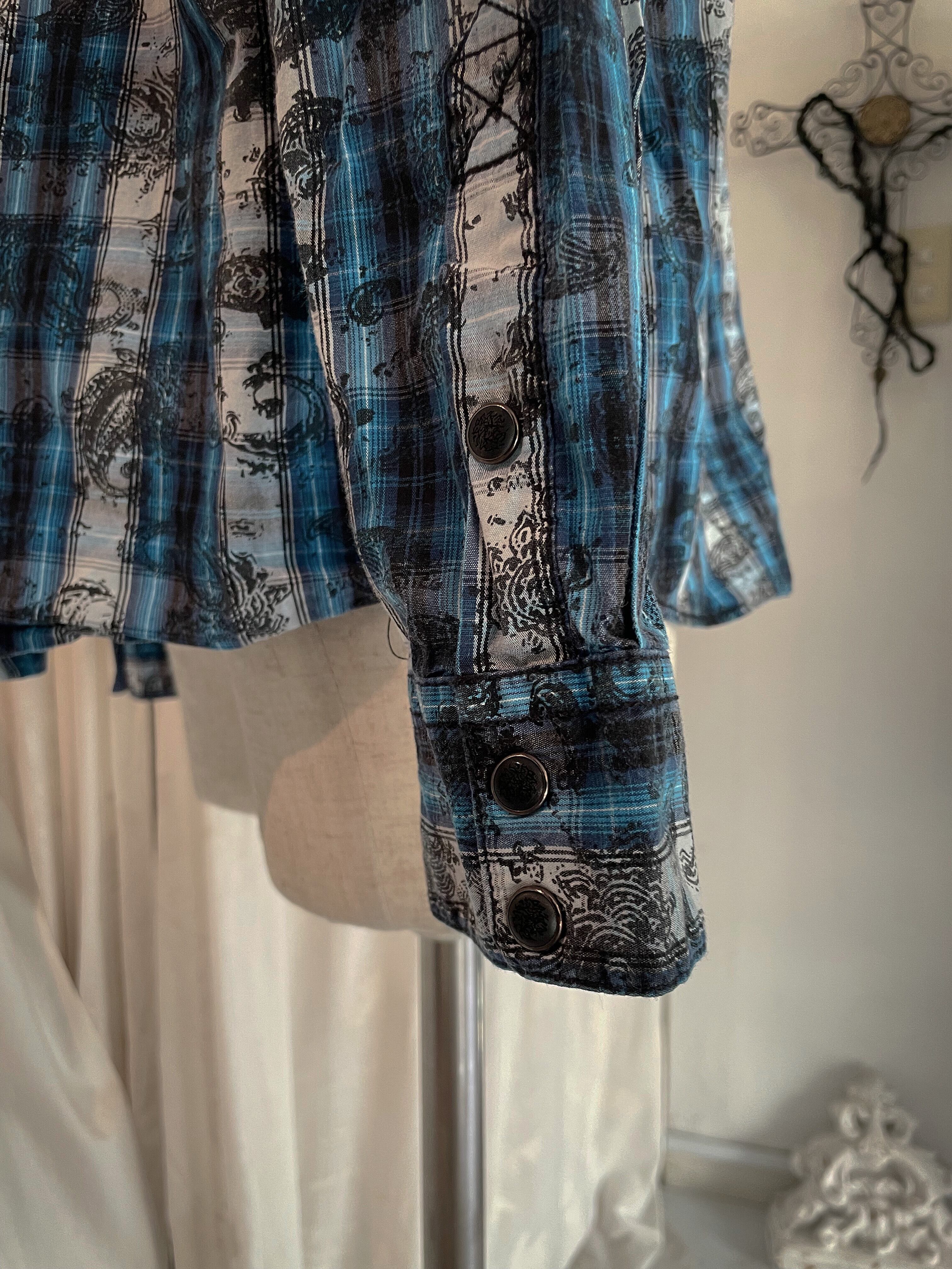 Blue Check Paisley Western Shirt