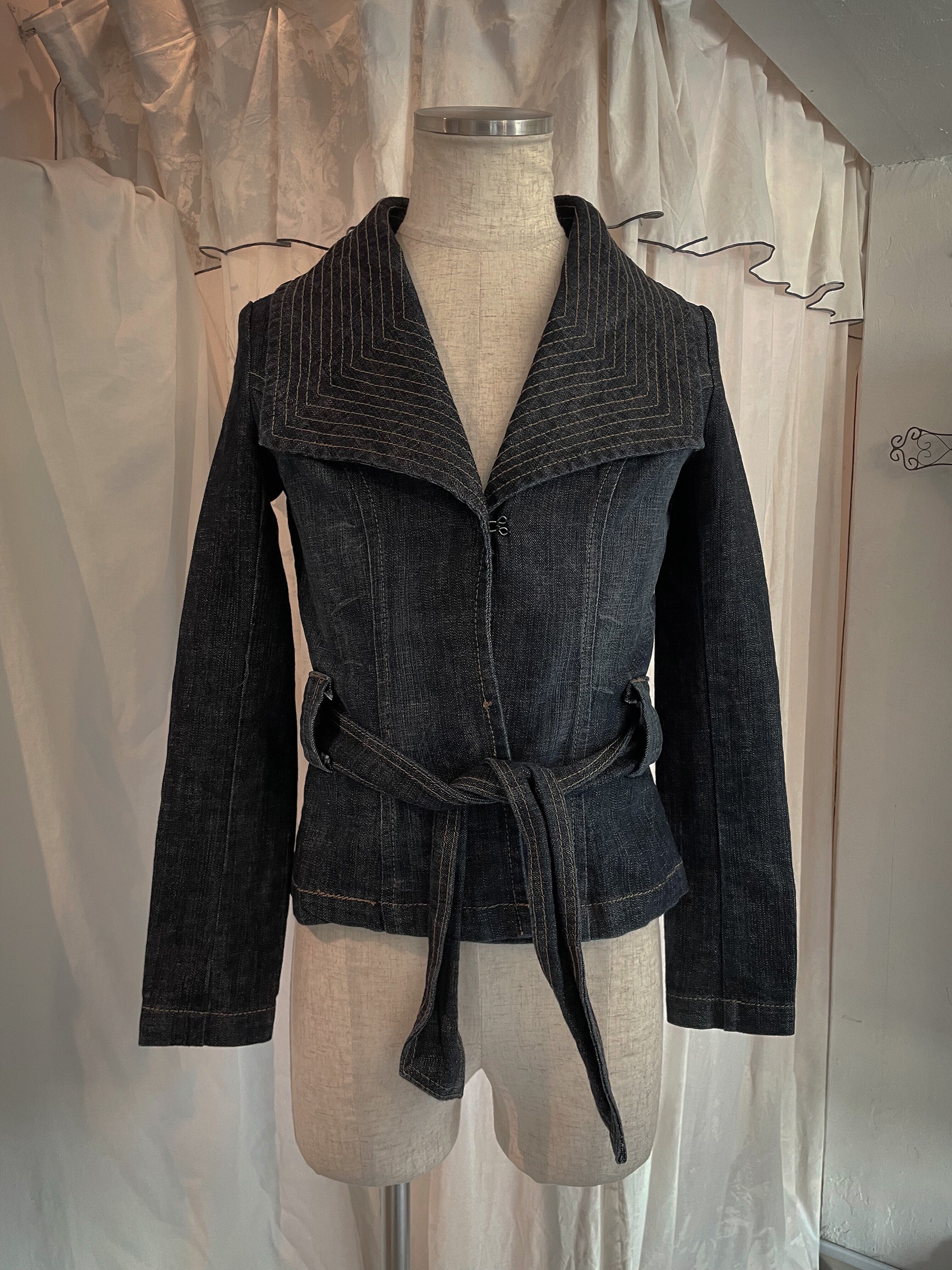 Tie Waist Tight Cropped Denim Jacket