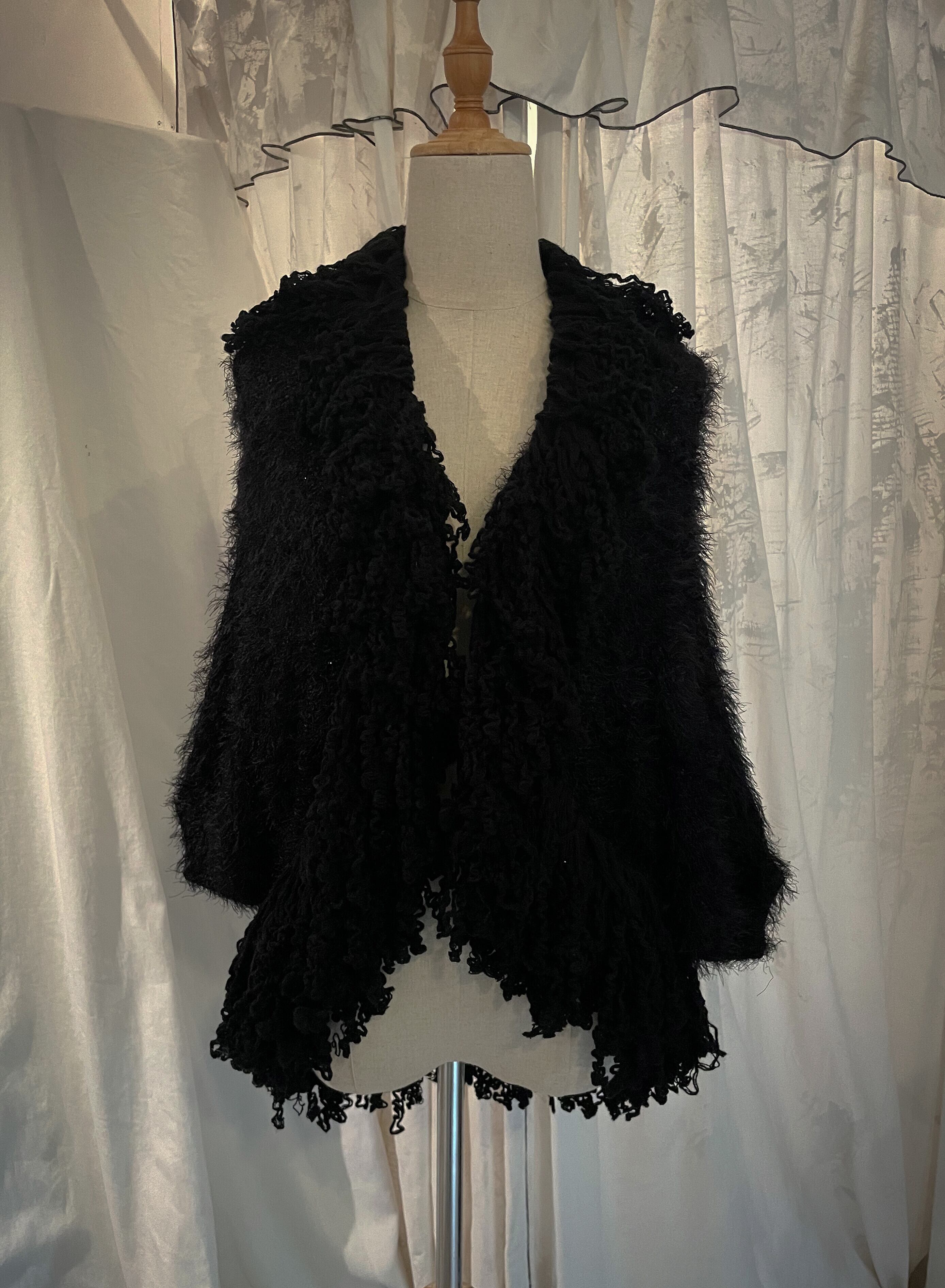 Black Fluffy Shaggy Knit Cardigan