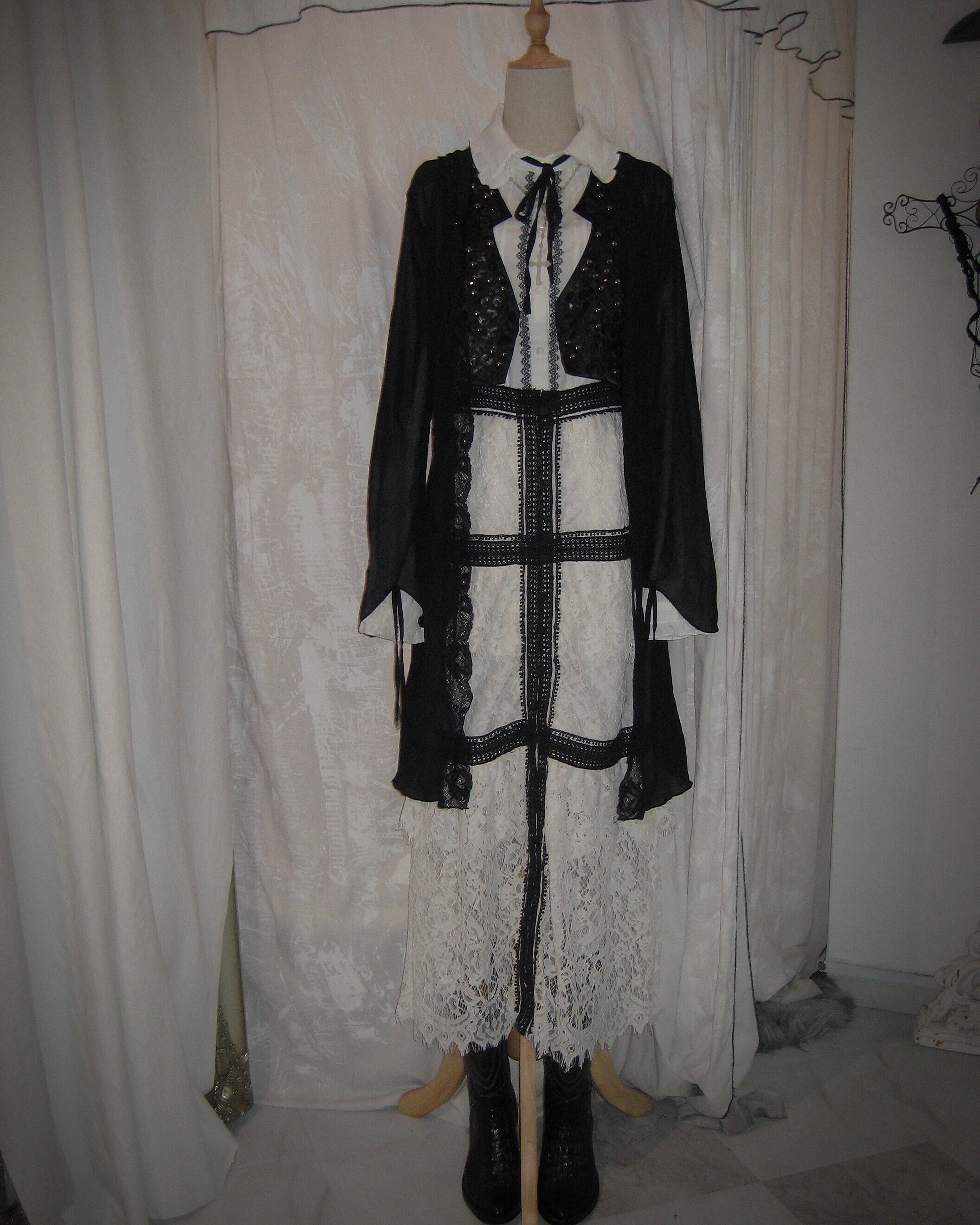 Black Line White Lace Long Skirt