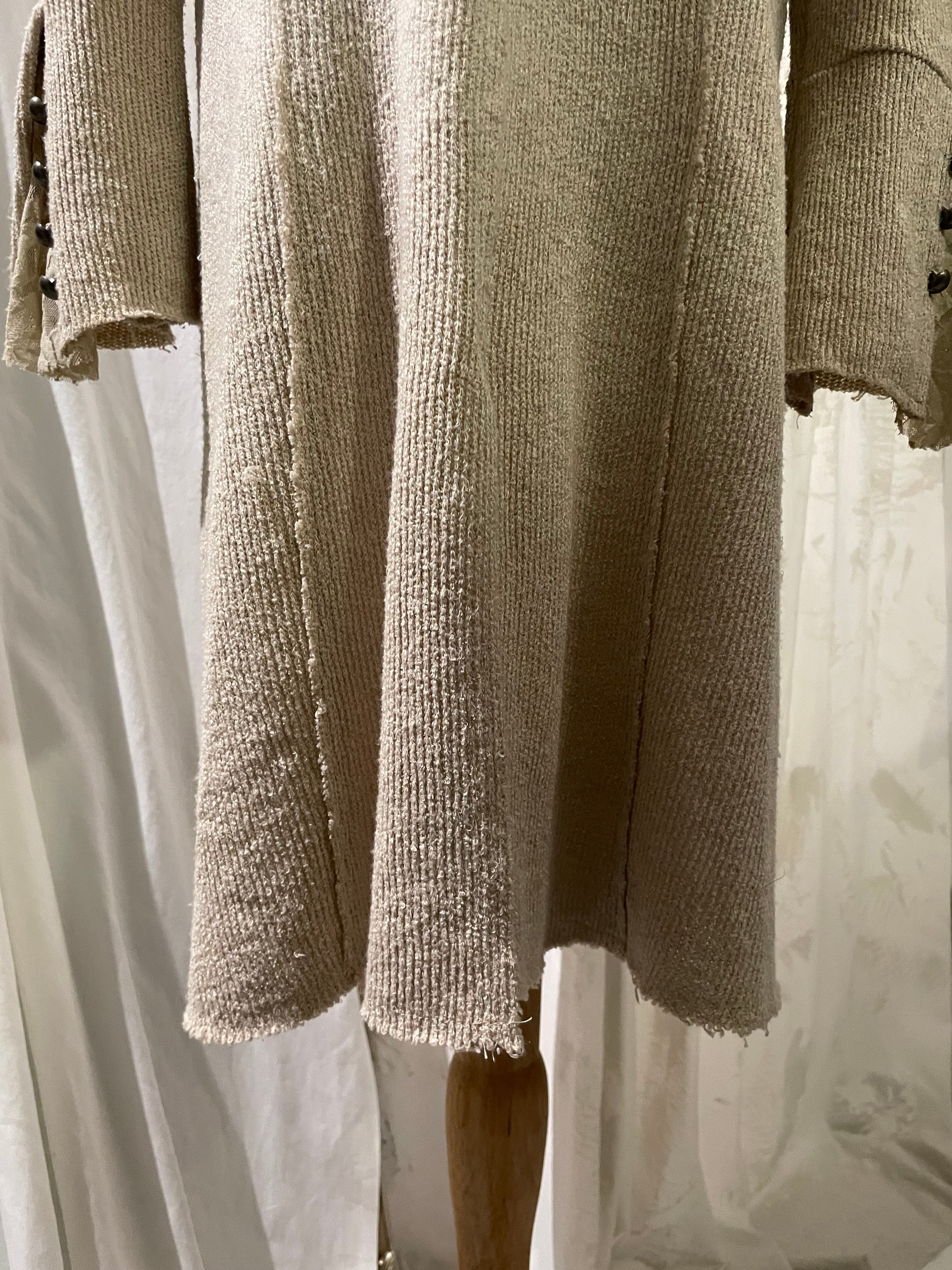 Double Button Beige Long Cardigan