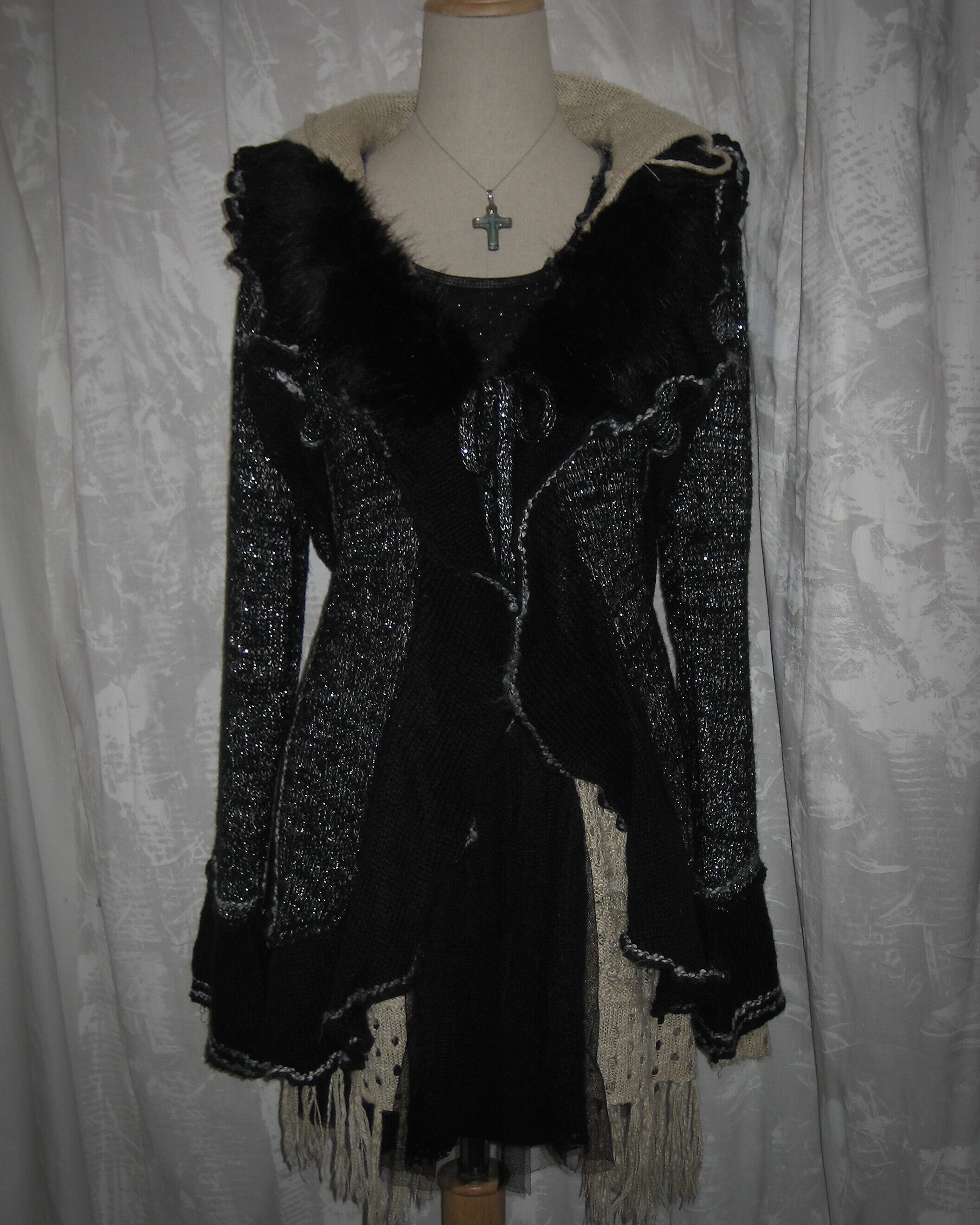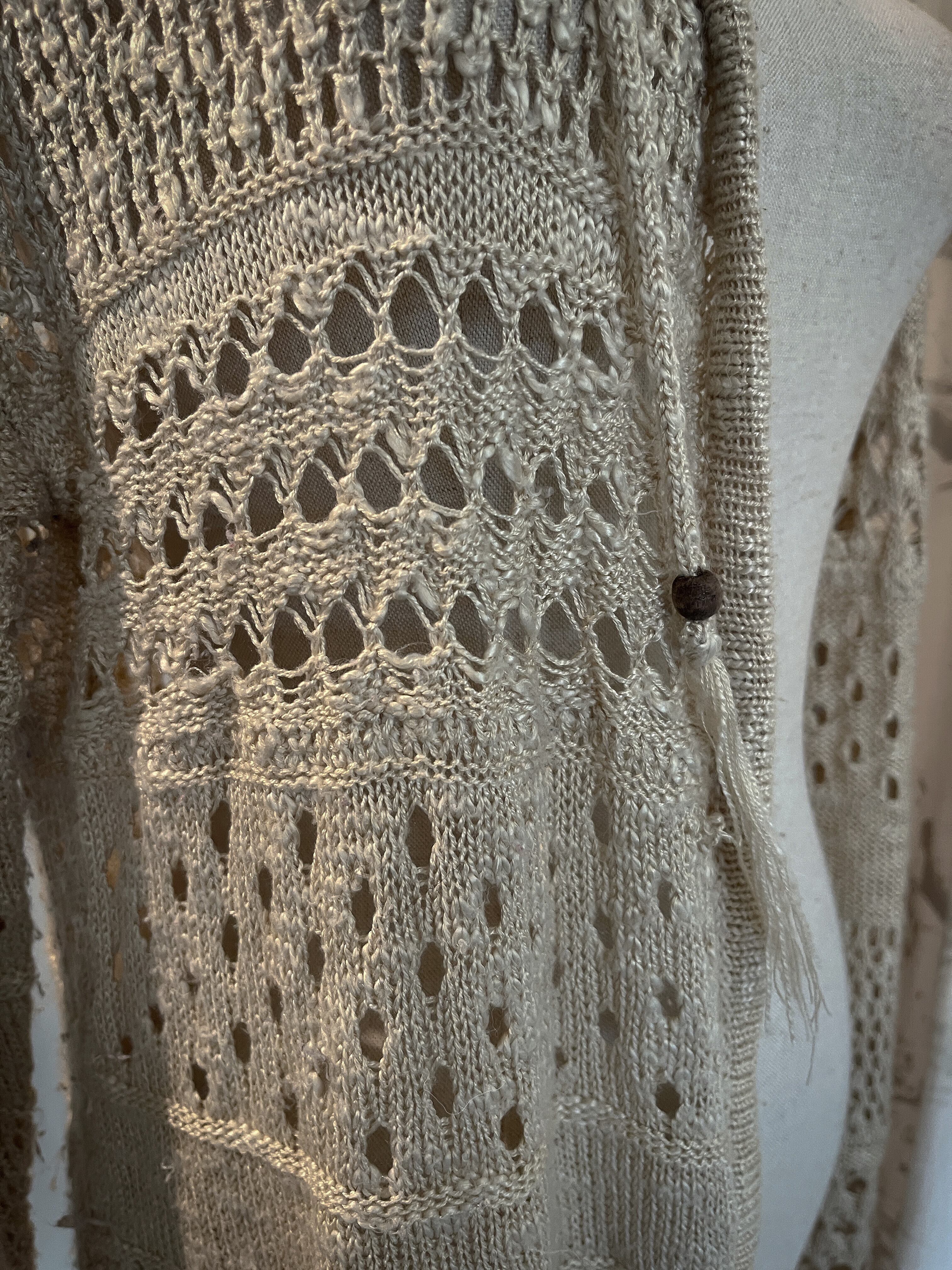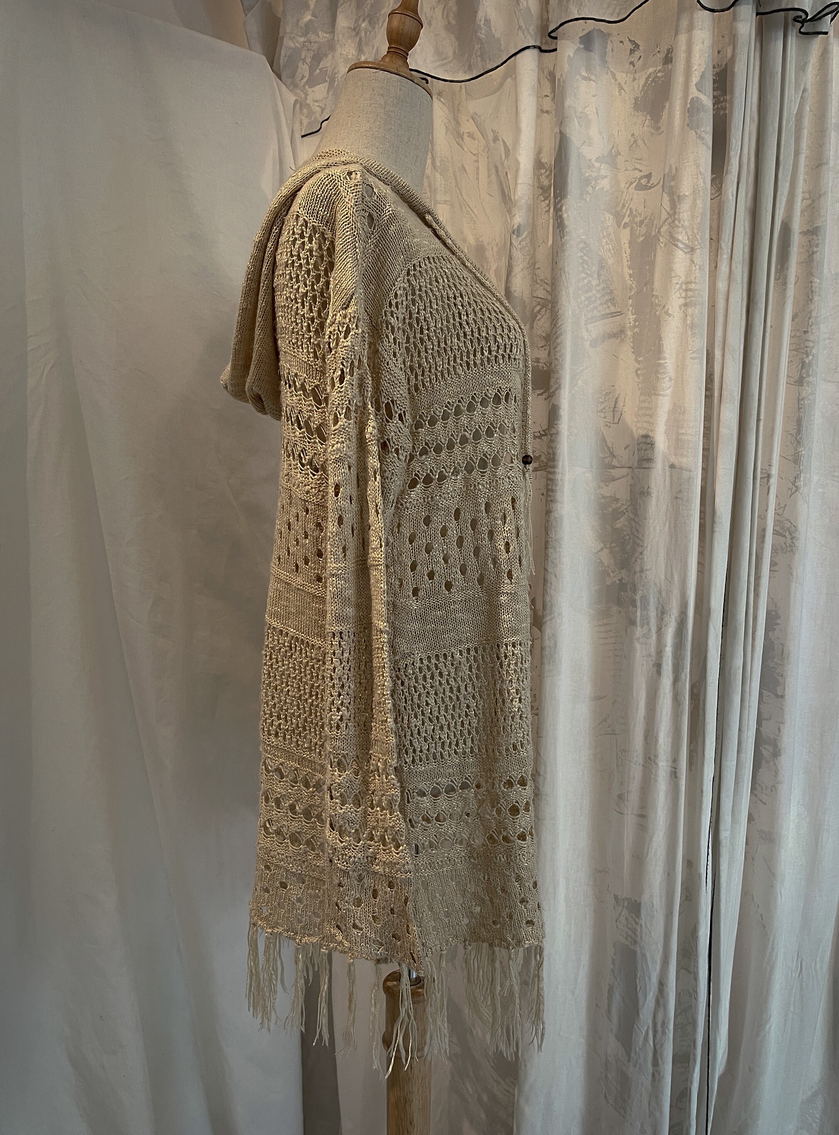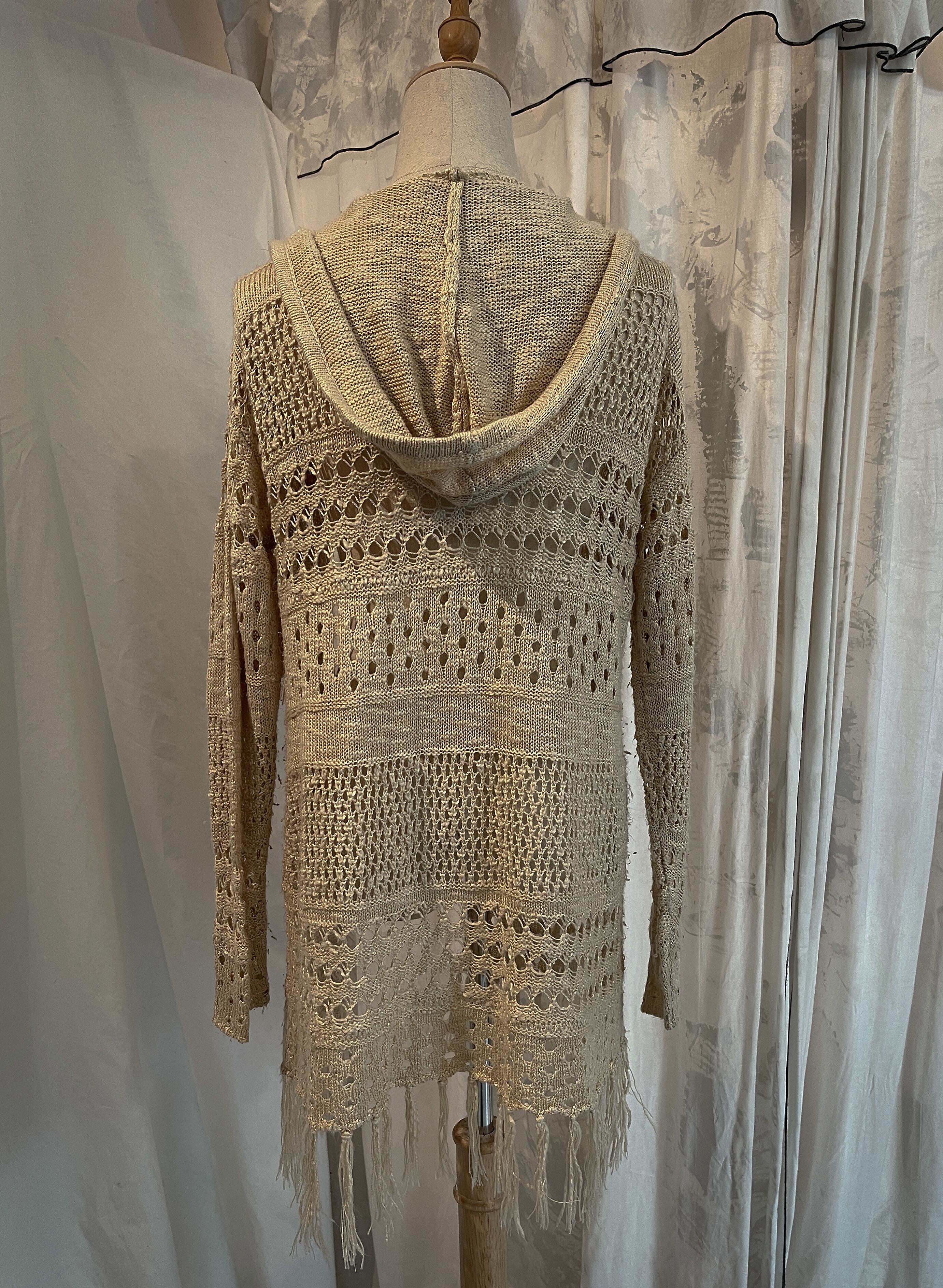 Beige Fringe Knit Hooded Cardigan