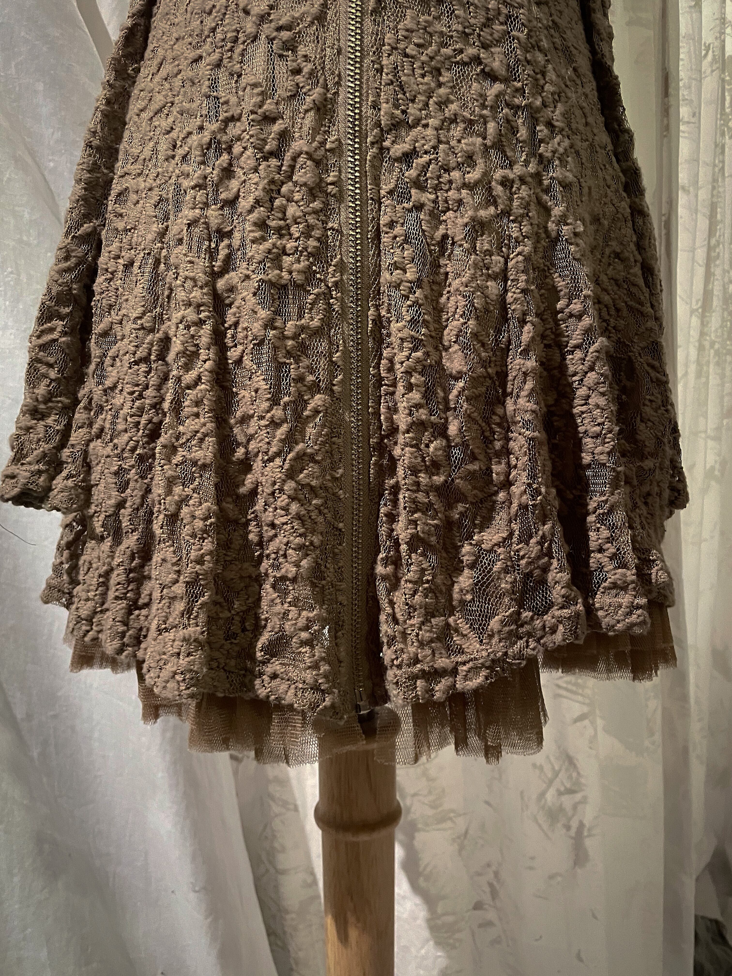 Beige Lace Flare Zip Cardigan